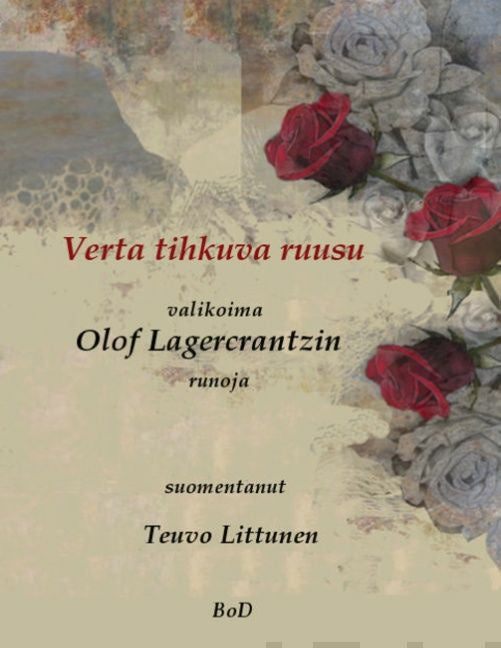 "Verta tihkuva ruusu" on uusi muokattu painos kirjasta "Viimeinkin". Erona on, että tässä kirjassa ei ole mukana Olof Lagercrantzin alkukielisiä runoja vaan ainoastaan suomennokseni. Sen sijaan Lukijalle-jaksossa on varsin tyhjentävä Lagercrantzin esittely. Lue lisää
