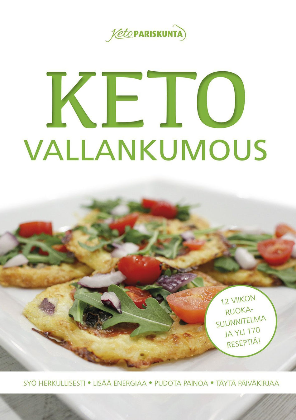 Kirjasta löydät tietoa ketoruokavalion aloittamiseen. Keto-Pariskunta on suunnitellut sinulle valmiiksi 12 viikon ateriakokonaisuuden, ostoslistan jokaiselle viikolle sekä herkulliset reseptit kaikkiin ruokiin. Kirjasta löydät lisäksi tietoa ketoruokavaliosta, päiväkirjan 12 viikolle, johon voit merkitä mittoja, aterioita, elektrolyyttien kulutusta, makroja, unta ja paljon muuta.