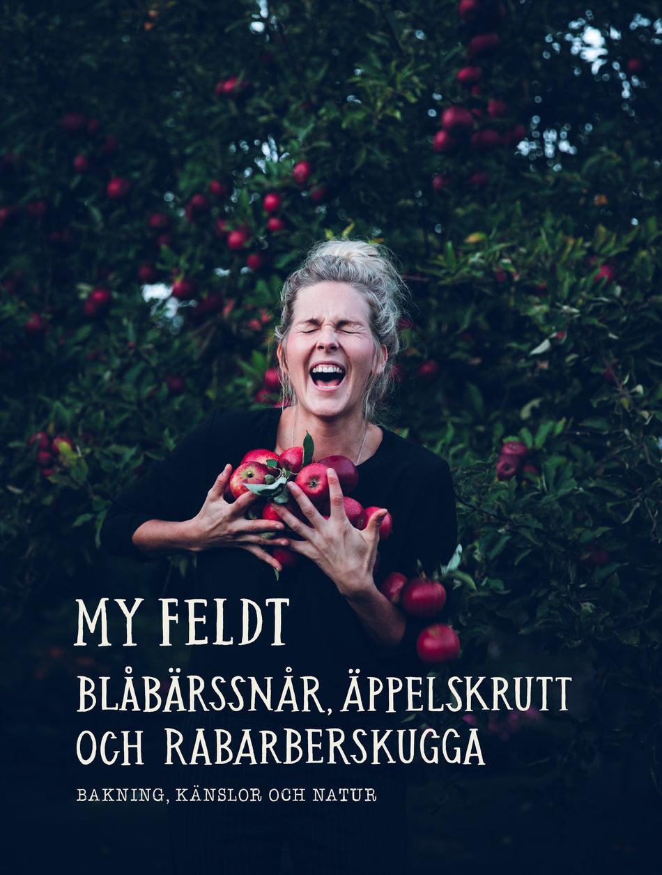 »Jag vill att mina recept ska framkalla känslor, dofter och minnen. Det ploppande ljudet från en rabarberstjälk som dras upp ur jorden. Texturen hos ett solmoget hallon som man plockar från busken och stoppar direkt i munnen. Doften av blommande syrener. Jag vill baka, jag vill se allt det fina i naturen och jag vill få andra att se det jag ser och känna de smaker som naturen rymmer.«Blåbärsnår, äppelskrutt och rabarberskugga är inte bara en egensinnig och glädjesprudlande bakbok. Det är lika mycket en berättelse om känslor, hållbarhet och om att leva i samklang med naturen. Det är en bok om att jorden är något vi lånar, om tillfredsställelsen att göra något med händerna för att förstå och se det vackra i det vi har omkring oss.My Feldt är den klarast lysande stjärnan inom den svenska bakvärlden och människor vallfärdar till Feldts bageri som hon driver tillsammans med Johan Feldt i Halmstad. My har ett imponerande cv bakom sig, och år 2017 tilldelades hon det prestigefyllda Svenska gastronomipriset med motiveringen »Årets vinnare är både relevant, modig och en sjuhelsikes bak- och matlagare«. Det här är hennes första bok och här har hon samlat över sjuttio recept på allt från pajer, tarteletter och bullar till småkakor, saft och kola.