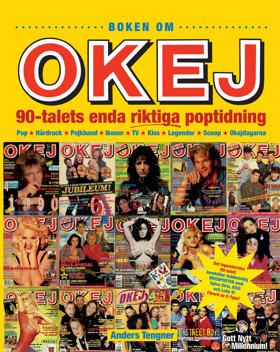 NÄR DET SLOG GNISTOR OMPOP-MUSIKEN DAGS ATT ÄLSKA nittiotalet det sista årtiondet då ungdomar hade popidoler och tapetserade väggarna med posters! En oskuldsfull tid som inte riktigt hade tagit klivit in i det nya årtusendet, men gärna ville. Mobiltelefoner gick bara att ringa ifrån, Internet var en nymodighet och CD-skivor sålde som smör. Den generation som var ung på nittiotalet omfamnade antingen pojk- och tjejbanden som kom att definiera decenniet, eller den rebelliska grungen som temporärt körde om hårdrocken. Okej, Sveriges största poptidning, tog självsäkert steget in i det nya årtiondet efter den fenomenala succén på åttiotalet. I boken om Okejs nittiotal får du uppleva hela det explosiva, färglada och galna årtiondet i text och bild. Massor av bilder. Tusentals bilder. Du möter stjärnorna som tapetserade din vägg, återupptäcker artister du glömt bort, och blir femton år på nytt när du står i publikhavet på Okejdagarna som var Sveriges största popfestivaler. Alla är med: Take That, New Kids On The Block, Spice Girls, Hanson, Westlife, Kiss, Alice Cooper, Army of Lovers, Ace Of Base, Backstreet Boys, Aqua, Britney Spears och just dina idoler. Du möter den tecknade reportern Johnny O Kej som träffade alla, på sina villkor. Idolträffarna, nakenfisarna, porrskandalerna, kärleksparen, knasbollarna, technon, hårdrocken och alla de svenska stjärnorna. Allt och alla som gjorde nittiotalet så fantastiskt samlas på hela 395 färg- och fartfulla sidor. Många av bilderna är unika och har aldrig tidigare publicerats. Exklusiva färska intervjuer med bland andra Westlife, Aqua, E-type och Alice Cooper. Du får en överblick och samlarguide över samtliga utgåvor av tidningen Okej 1990 1999. Okej 90-talets enda riktiga poptidning kan ses som en fortsättning till den framgångsrika Boken om Okej 80-talets största poptidning. Nu är det hög tid för nästa generation att minnas sina tonår. Okej var med då också... Och det med besked! Författaren ANDERS TENGNER började sin karriär hos Hans Hatwig på tidningen Poster som 1980 ersattes av Okej. Anders stannade på Okej som redaktör och fotograf i 25 år, ända fram till 2005 (med ett kort snedsteg för att starta en konkurrenttidning). Anders är extremt välbekant i landets musikkretsar. Han agerade ansiktet utåt för tidningen och var presentatör på de massivt populära Okej-dagarna. Åren 1997 2005 var Anders tidningens chefredaktör. Boken OKEJ 90-talets enda riktiga poptidning är insiktsfullt skriven av en riktig insider, Anders Tengner, en av OKEJs mesta medarbetare. Legendariska OKEJ-fotograferna Ulf Magnusson och Anders Tengner, Göran Lindsjöö och Michael Johansson har öppnat sina arkiv! Boken är ett sprakande stycke snyggt formgiven musik- och tidningshistoria. Ingen läsare lämnas oberörd, oavsett inställning till 90-talets populärkultur. Förord av E-Type. Rikligt illustrerad med många opublicerade bilder. Värderingsguide för samlare med alla nummer från 90-talet avbildade. 395 sidor. Som bonus en stor unik MEGA-poster på Spice Girls, Kiss och Leila K.!