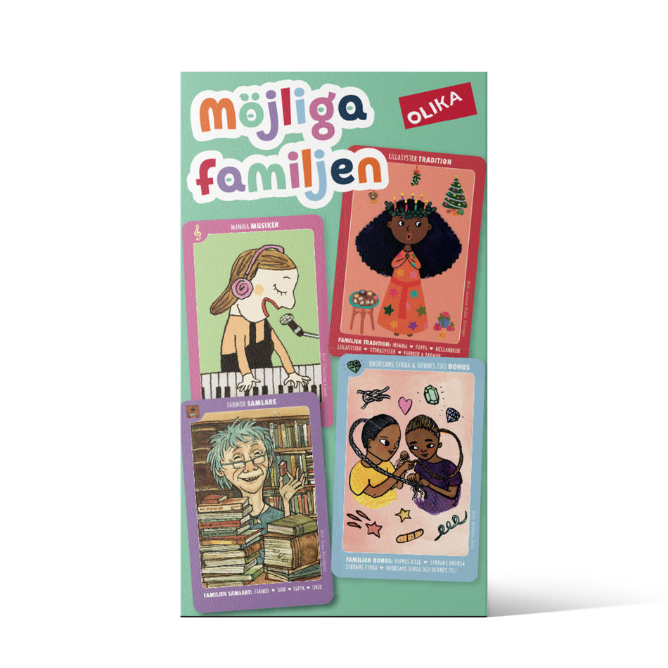 Skapa en ny tradition med familjen Tradition, av Joanna Rubin Dranger! Möjliga familjen en modern variant av ett traditionellt spel! Några av våra främsta illustratörer har skapat varsin familj till det nya spelet Möjliga familjen. Genom att få skapa fritt med inspiration från samtidens mångfald har spelet äntligen fått en modern variant i en smaskig premiumkartong, perfekt att ge bort! Spelet spelas antingen som ett klassiskt kvartettspel eller som finns i sjön . Enkelt, roligt och modernt. Möjliga familjen är skapat av Tom Johansen och familjerna är illustrerade av Joanna Rubin Dranger, Per Gustavsson, Sven Nordqvist, Charlotte Ramel, Marcus Gunnar Pettersson, Matilda Ruta, Lisa Wool-Rim Sjöblom och Emma Virke. OLIKA förlag tilldelades Rättvisepriset 2012 för sitt arbete för jämställdhet och jämlikhet i bokvärlden. MILJÖ OCH HÅLLBARHET: På OLIKA vill vi värna det hållbara och klimatkloka läsandet. Därför trycks våra böcker på andra sidan Östersjön, i Baltikum, på ett FSC-märkt papper och på ett tryckeri som är certifierat med Svanen. Lite närmare, lite dyrare, mycket bättre!