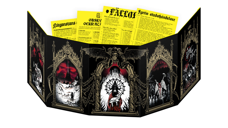 Dölj dina intentioner och/eller håll koll på dina slumptabeller med det här monstret till spelledarskärm för användande med rollspelet MÖRK BORG.*Ett vedervärdigt altarskåp av fem stående A5-paneler, vars framsida pryds av fem scener ur den döende världen; från HON bland Bergen Chrypts eldsfr...