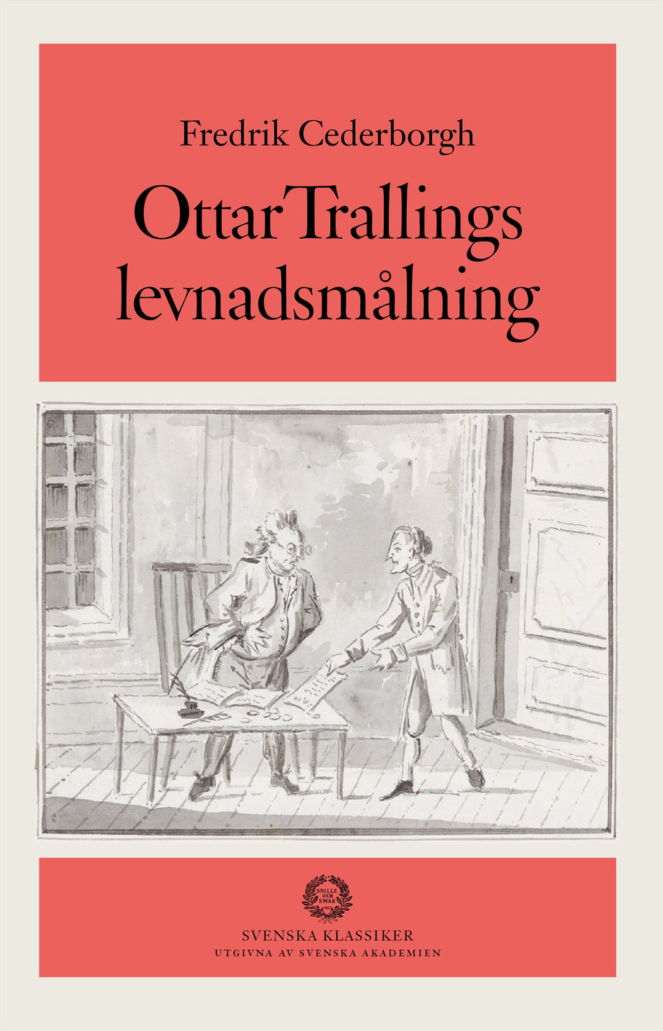 – Sven DelblancFredrik Cederborgh (1784-1835) har kallats den svenska realismens fader. Han tillhörde en välbärgad bergslagssläkt och kom efter en stockholmskarriär som ämbetsman, tidningsutgivare och boktryckare att återvända till hemtrakten i form av bruksägare. Hans erfarenheter från Stockholmsåren låg till grund för vad som brukar räknas som höjdpunkten i hans produktion: Ottar Trallings levnadsmålning (utgiven i fyra delar 1810-1818). Gunnar Ekelöf har kallat den ”vår första verkligt läsbara roman”. Det är en berättelse i den satiriska och pikareska stilen om ynglingen Ottars dråpliga äventyr i den kungliga huvudstaden som den tog sig ut under tidigt 1800-tal. Även en nutida läsare riskerar att smittas av såväl humorn som den otyglade berättarlusten.