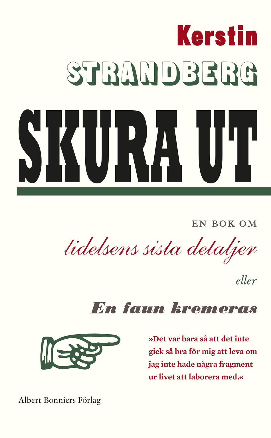Den första tanken, den vackra dagen: Hurra, nu kan jag öppna överallt och skura ur skåpen! Det handlade om min verksamhet, i den hade jag alltid åkt berg- och dalbana. Fanns det ett enda problem som kunde drabba en skrivande människa som inte jag stött på? Knappast.Skura ut är en berättelse om et... Lue lisää