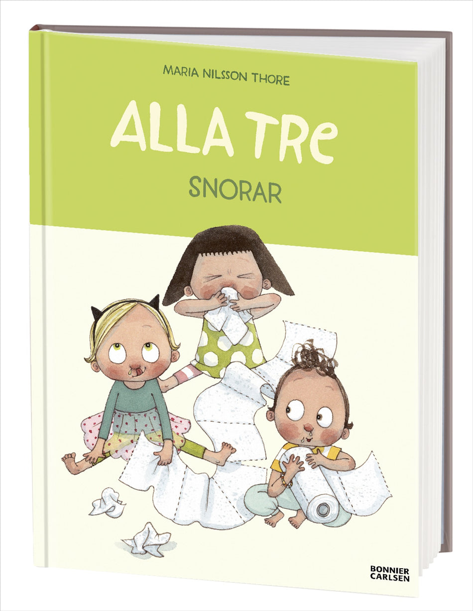 Esters näsa rinner och snorar. Det kladdar överallt! Fröken hämtar snytpapper och Ester fräser och fräser. Hon är visst lite varm om pannan också! Ester får lägga sig i myshörnan och vänta på att mamma ska komma. Orättvist tycker Idde och Valle. Men så börjar det rinna om deras näsor också ...Maria Nilsson Thore är en av våra mest älskade illustratörer och bilderboksskapare. Hennes stämningsfyllda bildvärldar rymmer storslagna känslor och kluriga små detaljer för både barn och vuxna att upptäcka och förlora sig i. "Alla tre snorar" är den trettonde fristående delen i serien om "Alla tre" - charmiga och uppskattade bilderböcker i förskolemiljö.