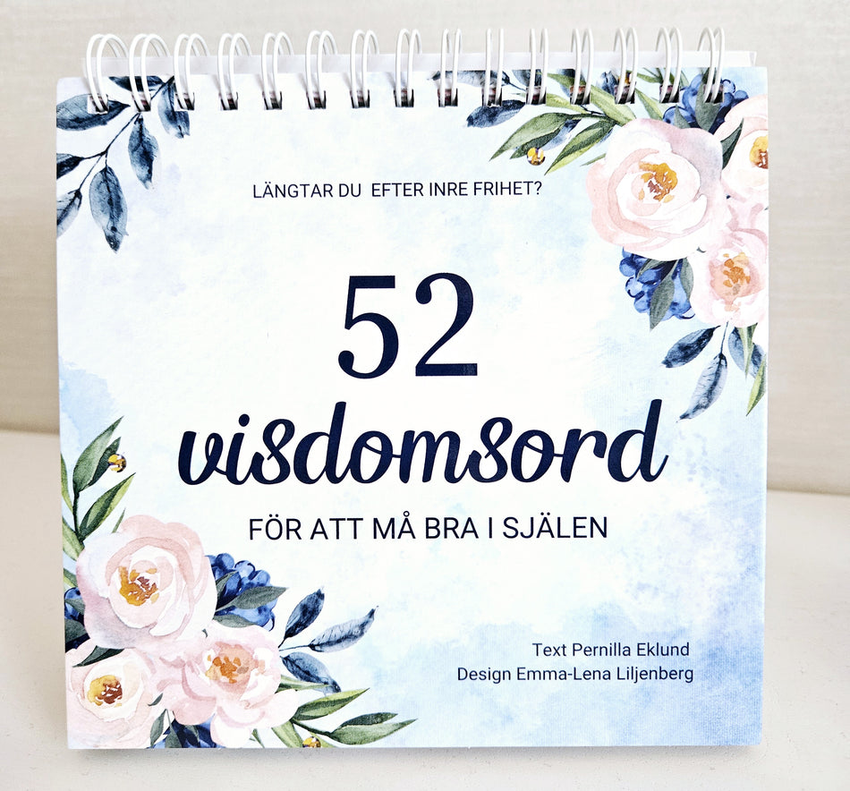 Tillsammans med en tilltalande och vacker, akvarellinspirerad design skapad av Emma-Lena Liljenberg kan du varje vecka bläddra fram ett utvalt visdomsord att ta fasta på.Visdomsorden vilar på beprövade psykoterapeutiska metoder och tolvstegsmetoden, i förening med den kristna förståelsen av varje människas behov av sunda relationer till sig själv, andra och Gud.Bordskalendern bygger på den bästsäljande boken 52 visdomsord för att må bra i själen av Pernilla Eklund. Pernilla Eklund är författare till flera böcker och webbkurser som förenar kristen tro och psykoterapeutiska metoder. Pernilla har arbetat med själavård och andlig vägledning sedan 2008.Emma-Lena Liljenberg är inspiratör och kreatör som med Bibelns ord i fokus ordnar workshops och kurser i bl a kreativ bibelläsning.