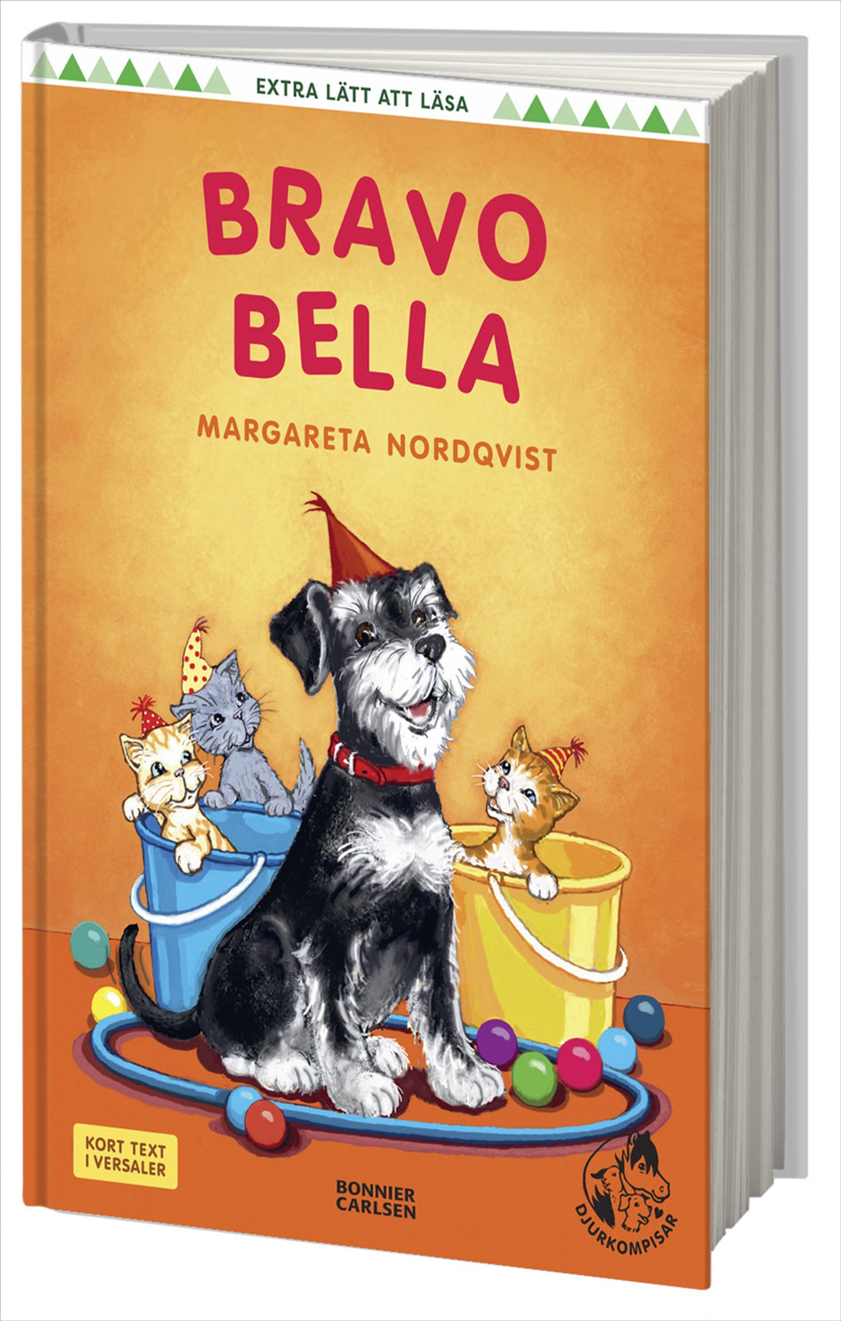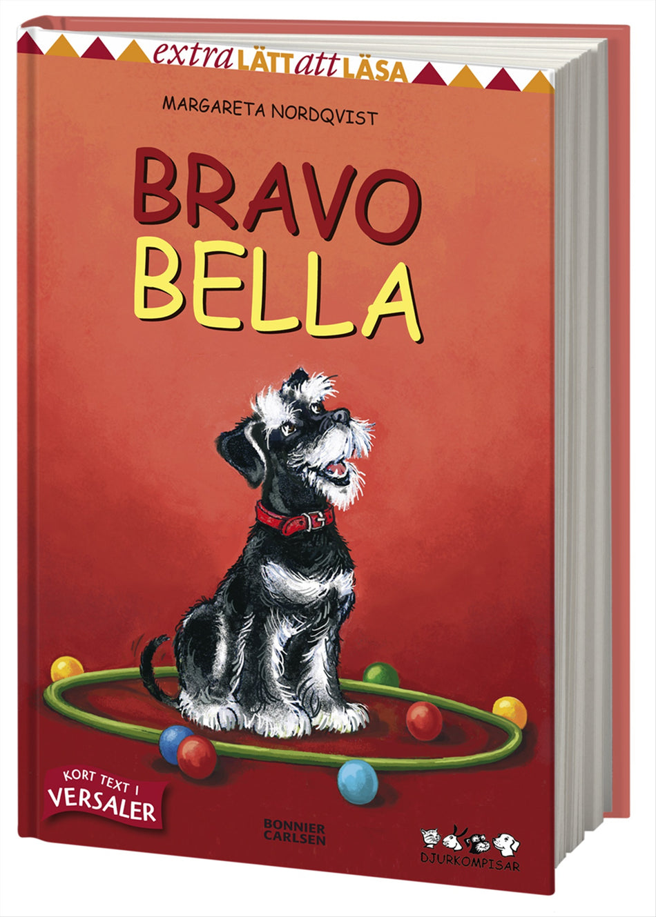 Bella är en riktig cirkusartist, hon kan både hoppa, balansera och dansa. Tillsammans med hunden Poppe sätter hon (och hussarna) upp en liten föreställning för kompisarna."Bravo Bella” är den fjärde boken i en lättläst serie om husdjur av Margareta Nordqvist, som illustrerar de populära Sigge-böckerna. Serien ”Djurkompisar” ingår i Extra lätt att läsa för de absoluta nybörjarläsarna. Kul och lätt läsning med versaler! I serien får vi följa barnen Maja, Lasse, Pelle och Ella som bor på landet och tar hand om olika djur. I "Bravo Bella" lär Ella och hunden Bella ut olika konster och tricks för Pelle och hans hund Poppe. Bella är duktig och kan allt ifrån att sitta vackert till olika hopp samt dansa och balansera med mera. Sen har de en liten föreställning för Maja, Lasse och Lisa, och deras djur. I Extra lätt att läsa ingår även serierna ”Sorro och Seppo” och ”Solgatan 1”.