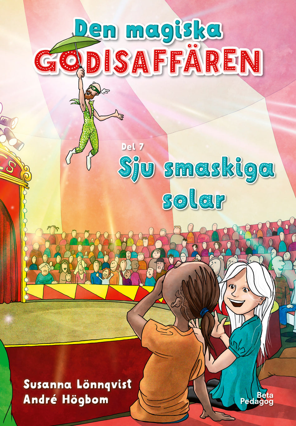 – Jag älskar cirkus! säger han. Hoppas det finns clowner! Och eldslukare! Och popcorn!Den magiska godisaffären är en serie lättlästa kapitelböcker för barn mellan 6 och 9 år. Böckerna är både spännande och roliga, och givetvis innehåller de även en del magi. Sju smaskiga solar är den sjunde boken i serien, där Melli och Fille går på cirkus. Bokens läsbarhetsindex (lix) är 18.Susanna Lönnqvist är författare och barnbibliotekarie, med en uttalad målsättning att sprida läslust till alla barn. Hon skriver i flera olika genrer, både spänning, äventyr och humor. André Högbom är en kreativ mångsysslare och illustratör med en alldeles egen stil. Hans bilder är välgjorda, humoristiska och detaljrika.