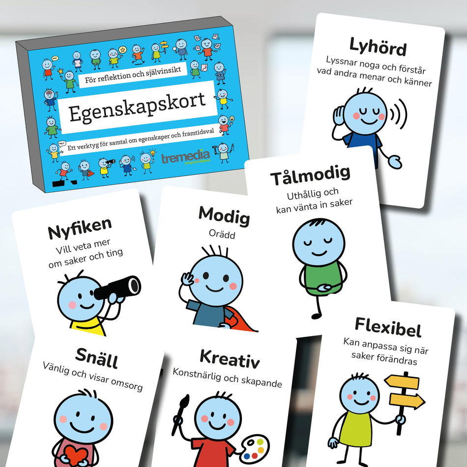 Syftet med korten är att skapa lustfyllda, reflekterande och meningsfulla samtal om egenskaper – både individuellt och i grupp. Genom tydliga illustrationer och lättbegripliga texter blir det enklare att prata om sådant som ofta är abstrakt eller svårt att sätta ord på.