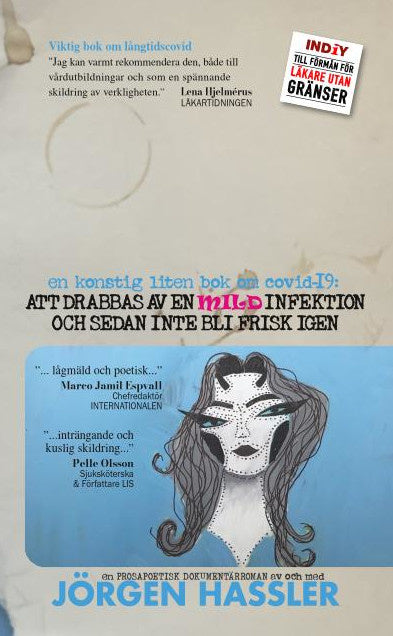 En första version av den här boken gavs ut 2022, och den har varit slutsåld en tid. I denna andra utgåva har texten kompletterats med en novell uppläst i radio 2023, som handlare om hur det är att inse att man lever med det mest minst kända och troligen mest skamfyllda symptomet på långCovid: hallucinationer.Läsare reagerar på den första utgåvan: "blir väldigt berörd" ‡ "ger god inblick utan att vara alltför tungläst" "poetik från ett gränsland" ‡ "formulerar i ord sådant som jag inte trodde gick att formulera i ord" ‡ "kafka-liknande" "fin och meditativ läsning" ‡ "men ändå finns där en del humor" ‡ "imponerande!" ‡ "man förstår en sjuk och tidvis förvirrad människas kamp för att hålla sig över ytan"Jörgen Hassler är fysioterapeut. MSc i medicinsk vetenskap, och har varit verksam inom psykiatrin neurolgi och högspecialiserad smärtvård. Han har givit ut tre romaner och en diktansamling. Tidigare har han arbetat som skrivande reporter. 30 kronor per såld bok skänks till Läkare utan gränser.