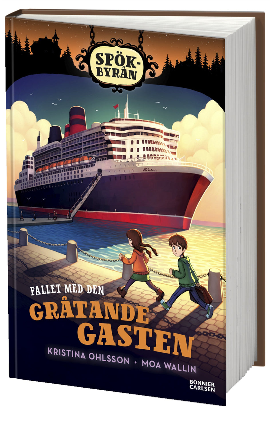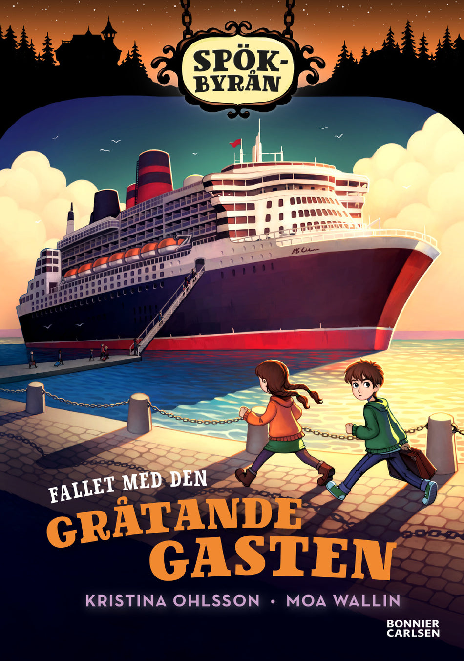 Ett gammalt, fint kryssningsfartyg har lagt till i Dimdalen. Elsa och Kalle på Spökbyrån blir genast nyfikna. Snart visar det sig att fartyget har fått problem. Någon ombord välter stolar och bord och äter upp en massa mat. Polisen har varit där, men kan inte hitta minsta spår efter den som förstör. Och vad är det för ett mystiskt ljussken som varje natt syns ute på däck? Passagerarna är otåliga och kaptenen ber Spökbyrån om hjälp. Fartyget måste snart kunna lämna Dimdalen! Ska Elsa och Kalle hinna lösa fallet innan det ger sig av?Böckerna om "Spökbyrån" är rafflande och klurig läsning för lågstadieåldern av spänningsmästarinnan Kristina Ohlsson. Moa Wallin har gjort de generösa illustrationerna med sagolikt ljus. ”Fallet med den gråtande gasten” är den femte fristående boken i serien. Läs också: ”Fallet med den rysliga skuggan”, ”Fallet med det mystiska godismonstret”, ”Fallet med den farliga dimman” och ”Fallet med den stora tågolyckan”.KRISTINA OHLSSON är en av Sveriges främsta spännings- och barnboksförfattare. Hennes böcker har blivit stora läsarsuccéer, inte minst hennes populära rysare för slukaråldern. Med titlar som "Glasbarnen", "Zombiefeber" och "Mysteriet på Ödeborgen" har hon en central plats i barnens bokvärld. Här är hon aktuell med en spännande serie för barn i lågstadieåldern – Spökbyrån!MOA WALLIN har illustrerat böcker för både barn och vuxna. Hon har även gjort bilder till spel, läromedel och skivomslag. Hennes stämningsfulla illustrationer gör Spökbyrån och Dimdalen till en extra mysig plats att vara på.