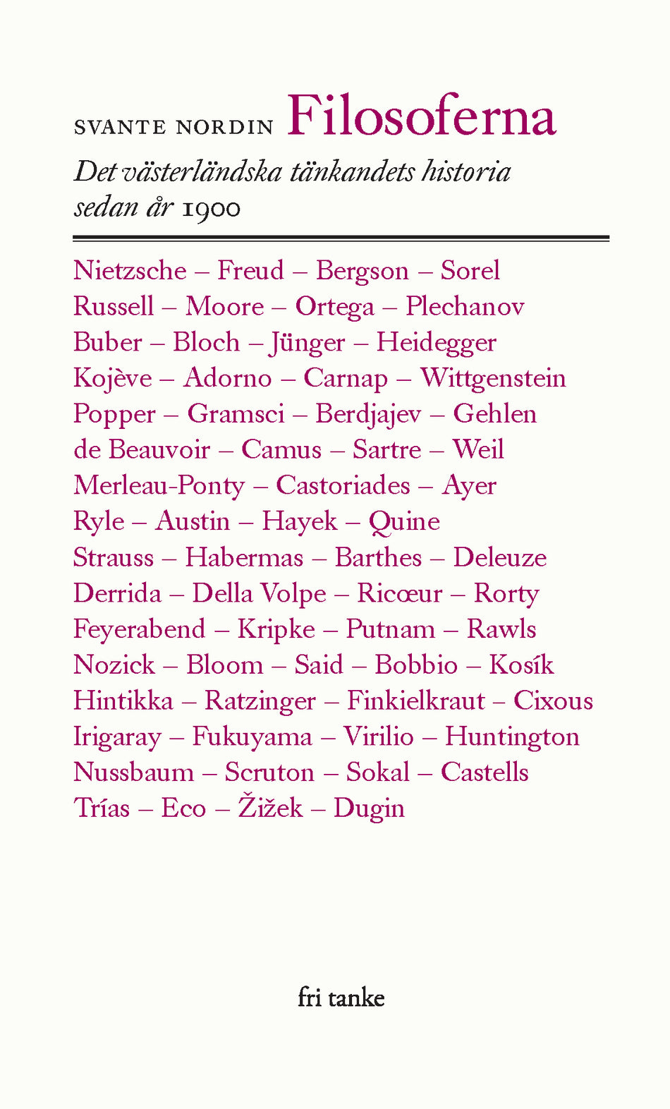 Vid 1900-talets början finns en utbredd uppfattning om att filosofin befinner sig i kris. De förmoderna kunskapsformerna har förlorat sin ställning och de kulturella framstegens och det vetenskapliga samarbetets tid ska snart sjunka ner i det första världskrigets skyttegravar. Men istället för at... Lue lisää