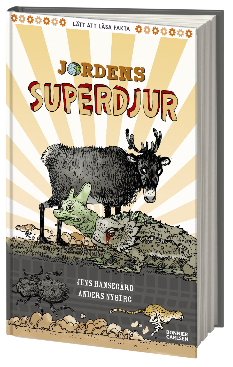 Läs om djur med fantastiska superkrafter! Vad sägs om den lilla järnpansarbaggen som kan bli överkörd av en lastbil utan att den bryr sig, paddleguanen som kan skjuta ut giftigt blod ur ögonen, alpseglaren som kan sova och flyga samtidigt eller dubbelkamsbasilisken som kan springa på vattnet som ingenting! Här finns också odödliga maneter, dyngbaggar, draktusenfotingar, pistolräkor, fingerdjur och myrkottar, ja, allt man kan önska sig. Jens Hansegård vet hur man skriver spännande och lättläst, och ingen kan som Anders Nyberg väcka intresse med sina illustrationer. Garanterat kittlande läsning för alla faktatörstande unga!JENS HANSEGÅRD är journalist och mångsidig författare av fakta och serier. ANDERS NYBERG är en av landets mest anlitade faktaboksillustratörer som även har gjort egna böcker för barn. Det här är deras tolfte bok i serien "Jordens fakta".Läs också: "Jordens tuffaste djur", "Jordens försvunna skatter"; "Jordens rekordbok", "Jordens mystiska platser", "Jordens läskigaste väsen", "Jordens utdöda djur", "Jordens fantastiska byggen", "Jordens underjordiska platser", "Jordens snällaste djur", "Jordens farliga platser" och "Jordens mystiska försvinnanden".