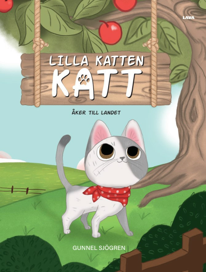 Hej, det är jag som är lilla katten Katt. Jag bor med stora katten Katt och tre småkatter hos farmor och farfar i ett stort hus i stan. Där fick du träffa oss i vår första bok.