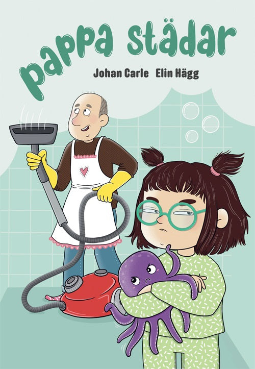 Johan Carle och Elin Hägg bjuder på en varm och humoristisk skildring av vardagens små och stora draman i barnboken Pappa städar. Med ett rappt och lekfullt språk fångar Carle den intensiva dynamiken mellan barn och förälder – där viljor krockar, känslor svallar och kompromisser sällan är enkla. Bokens huvudperson, Myra, är en viljestark och påhittig femåring som hellre vill åka pulka än att städa. Hennes frustration över Pappas plikttrogna inställning leder till både bråk och skratt, och det hela eskalerar i en scen där Myras älskade gosedjur Blenda hamnar i toaletten. Till slut lyckas de hitta en lösning där både lek och ansvar får plats – något som småbarnsföräldrar lär känna igen sig i. Elin Häggs illustrationer lyfter berättelsen med sitt mjuka, charmiga uttryck. Hon fångar både de stora känslorna och de humoristiska detaljerna, vilket gör boken till en fröjd att läsa både för barn och vuxna. En av bokens styrkor är hur den skildrar barns rättframma logik och starka känslor på ett trovärdigt sätt. Myras uttryck som ”Din jävrans sumpråtta!” och hennes funderingar kring varför morföräldrarna inte kan flytta ihop visar både humor och barns unika sätt att se på världen. Sammanfattningsvis är Pappa städar en rolig, igenkännande och kärleksfull berättelse om vardagslivets små konflikter – och om hur en bråkig städdag ändå kan sluta i pulkaglada skratt.***************************************************************Utdrag ur BTJ:s recension
