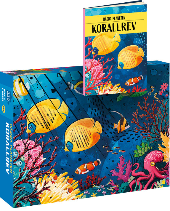 Pussel och bok med viktiga fakta och färgsprakande illustrationer! Korallreven är ett av de mest fantastiska och värdefulla ekosystemen vi har på jorden. I den 32-sidiga boken kan du lära dig mer om de vackra korallreven och vad man kan göra för att skydda dem. Lue lisää