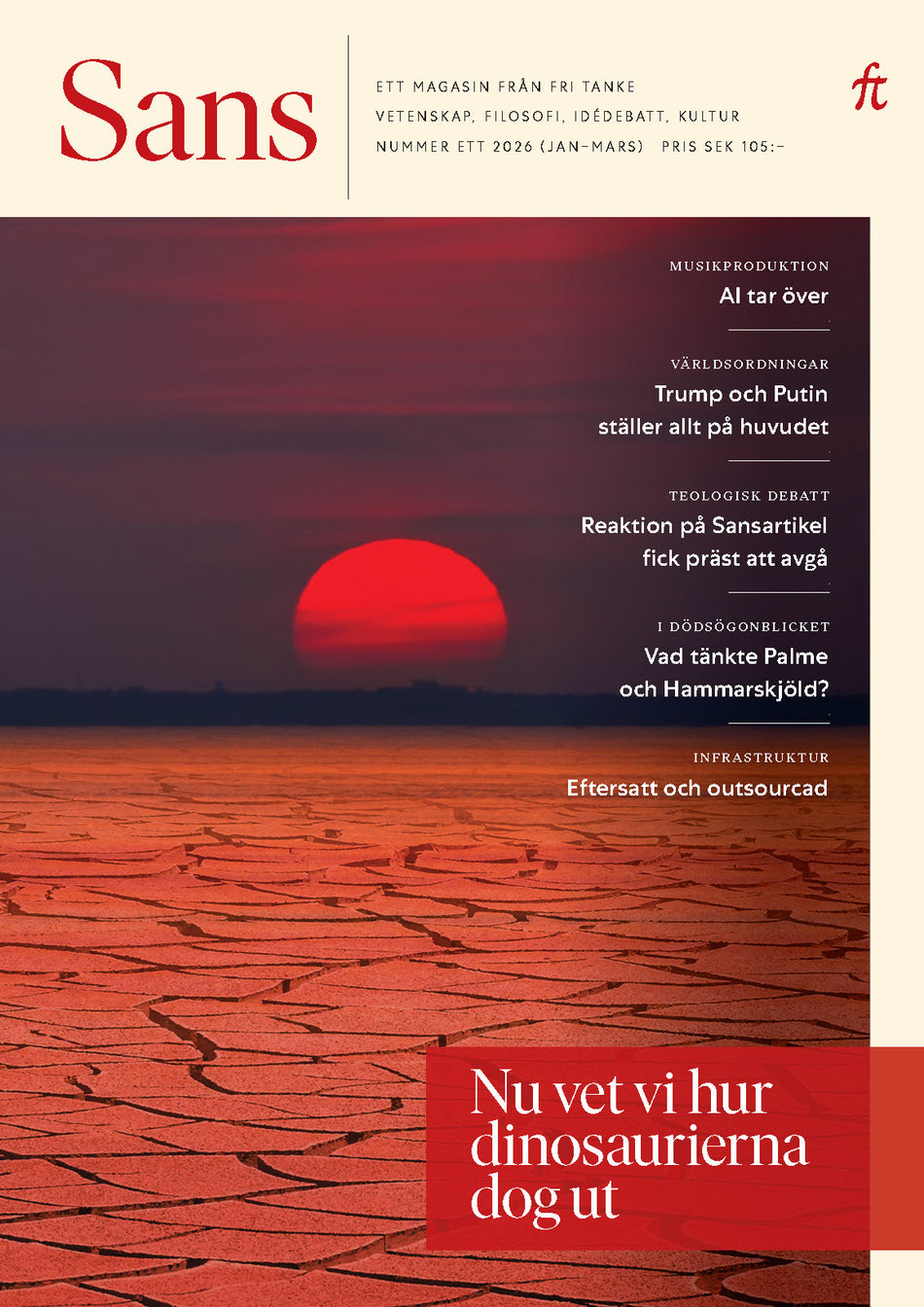I årets första nummer av Sans undersöks den nya världsordningen – från geopolitik till algoritmer. Pierre DiAvisoo visar hur en prompt kan ersätta en kompositör, Martin Kragh skriver om stormakternas nya kodspråk, och Birger Schmitz tar oss tillbaka till ögonblicket då dinosaurierna dog ut – och livet uppstod.
