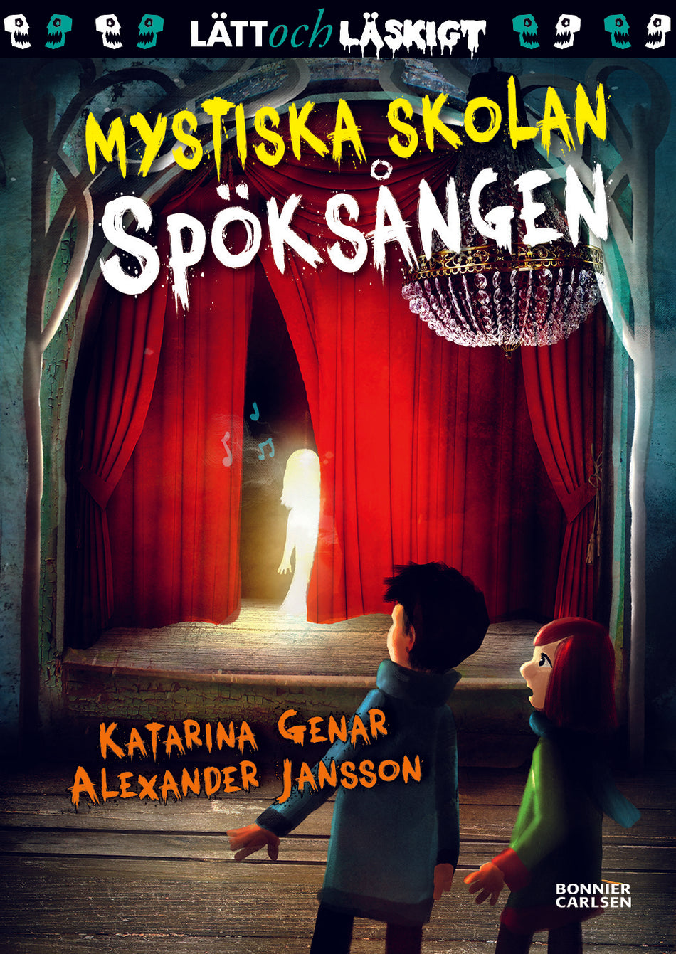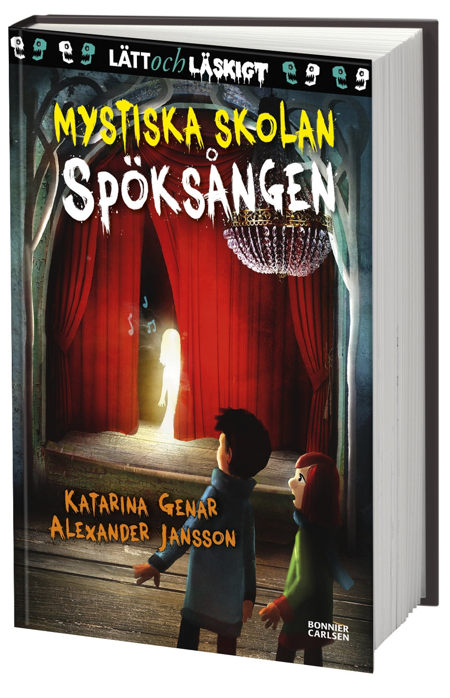 Följ med till skolan som inte är som andra! Här händer det ofta spöklika och lite kusliga saker. Och ibland kan man till och med träffa på någon som levde för länge sedan! ”Mystiska skolan” av Katarina Genar är en serie rysmysiga och lagom läskiga böcker för nybörjarläsare. Alexander Janssons stämningsfulla färgillustrationer skapar magi.Greta älskar sin mystiska skola. Nästan varje dag händer det något spännande. I dag ska det komma en ny flicka till klassen. Men när Kenza, deras bildlärare, ska skriva flickans namn på tavlan slutar pennan att fungera. Greta och Malte måste hämta nya hos vaktis.När de går förbi aulan står dörren på glänt. Där inifrån hörs en svag sång. Sången är otäck och vacker på samma gång. Som en spöksång från en annan värld …Spöksången är den femte fristående boken i färg om kompisarna Greta, Malte och Teo i ”Mystiska skolan”. Läs också: Svarta madam, Anden i glaset, Spökhunden och Pianot på vinden. Om du vill läsa en lite längre kapitelbok i serien kan du pröva Spöket i biblioteket, med svartvita illustrationer.