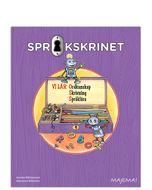 Språkskrinet robot innehåller fem kapitel och boken passar bra att arbeta med på höstterminen i årskurs 1. Bokens kapitelteman är: Loppis, Skolan, Djuraffären, Nöjesfältet och Hönsgården. Precis som övriga grundböcker i serien Språkskrinet så innehåller denna de tre delarna: ordkunskap, språklära och skrivning. Ordkunskapen och skrivningen knyter an till kapitlets tema med en sida vardera. Språkläran har två sidor per kapitel och innehåller bland annat en och ett, lägesord, motsatsord och hur man bygger en mening. Till grundboken ingår ett separat bokstavshäfte, Språkskrinet ABC. Se paketpris!