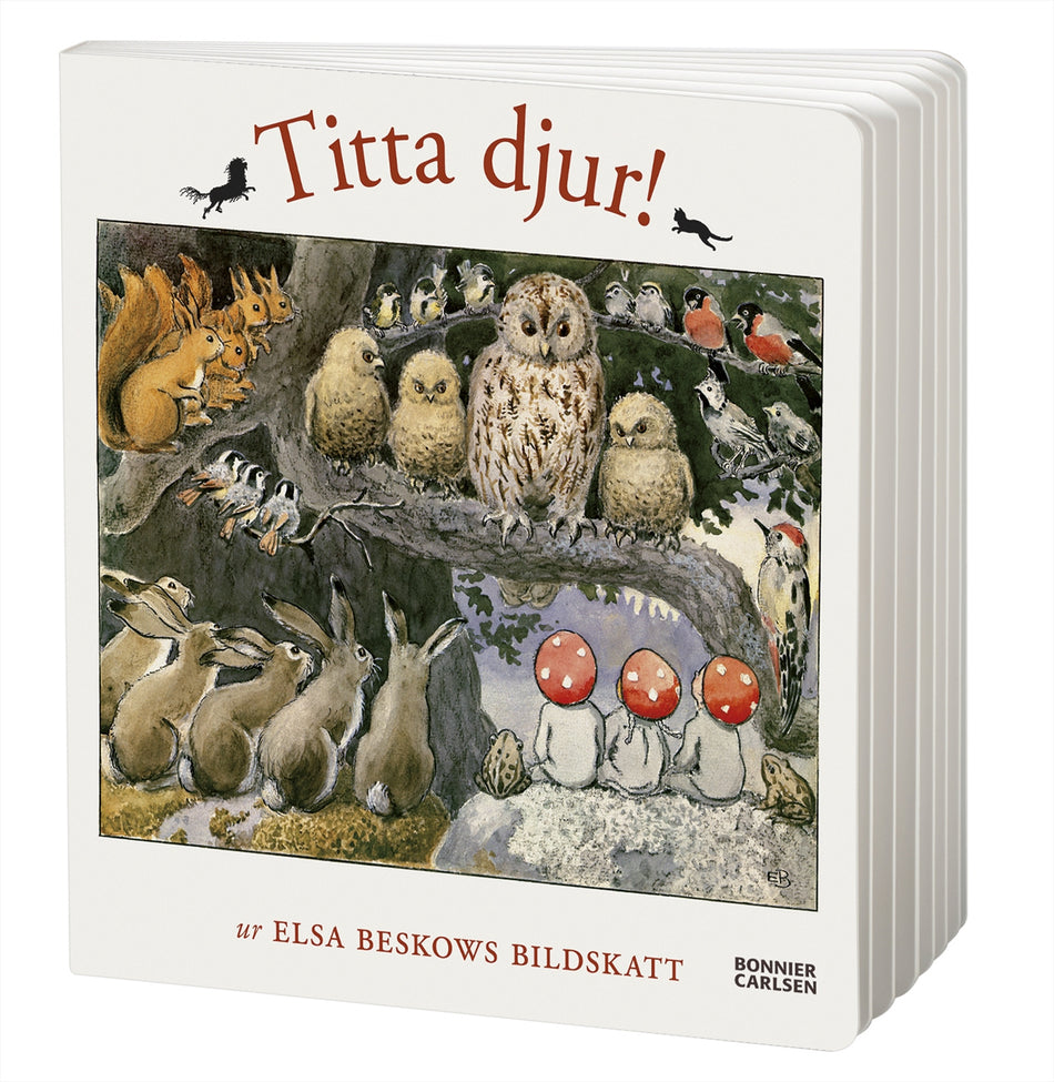 En pekbok med bilder ur Elsa Beskows fantastiska bildskatt. Möt de spännande djuren på gården och i skogen. Här finns kattungar och små lamm, hundar, grodor, harar, ekorrar, en spejande uggla och en lufsande björn! "Titta djur!" är en pekbok i behändigt format, att titta i tillsammans eller för e... Lue lisää