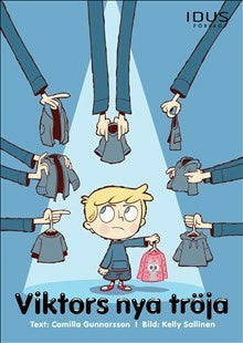 Viktor ska köpa en ny tröja. Han tittar på flera tröjor innan han hittar den han vill ha, en rosa tröja med en katt på magen.