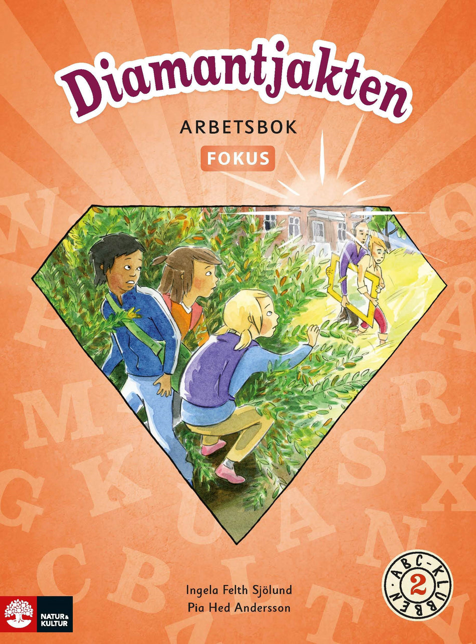 I läsläran ingår läseböcker i olika nivåer för att ge en sammanhållen läsupplevelse för hela klassen. Det finns arbetsbok i två versioner, bonusbok, läxbok och lärarhandledningar samt lärarwebb.  Det här är den spännande berättelsen för årskurs 2! ABC-klubben, barnen Asta, Bea och Cesar, kastas nu in i ett nytt äventyr. Läraren Olle har hittat på ett spännande projekt där en nalle ska skickas ut i världen med en lapp runt halsen: "Skriv tillbaka till klassen om vad nallen varit med om." Bea, som just kommit tillbaka från en utlandsresa, bestämmer sig för att skänka en av sina nallar till projektet och nallen placeras utanför skolgrinden. För sent får Bea veta att mamma har gömt mormors diamantring inuti just den nallen. Hon hade velat lura eventuella inbrottstjuvar under tiden de var borta. En jakt efter diamanten börjar. Regelbundet får ABC-klubben livstecken från nallen, men de ligger ständigt ett steg efter. Läsebok A, B och På väg Läseboken Diamantjakten finns i tre versioner. Böckerna innehåller samma berättelse, men A-boken har inte lika mycket text som B-boken. Den blå På väg-boken har minst textmängd och ökat bildstöd. Alla kapitel börjar och slutar på samma sidor i de olika versionerna. Läseböckerna finns också i digitalt format med intalat ljud. Böckerna finns även digitalt med alla tre versioner i en och samma produkt. I den digitala läseboken finns funktioner som talsyntes med medföljning, möjlighet att ändra typsnitt, läslinjal och andra funktioner. Arbetsbok I arbetsboken utvecklar barnen sin läsning och skrivning. Till texterna i läseböckerna finns läsförståelse- och skrivuppgifter där eleverna bl a tränar att skriva egna texter i de texttyper de mött i läseboken. Inom de första språkläremomenten övas alfabetisk ordning, ordbildning och stavning. Arbetsbok Fokus Arbetsbok Fokus passar elever som behöver ett tydligt upplägg med utvalda uppgiftstyper, bilder som stödjer innehållet och vägledande exempel. Arbetsbok och Arbetsbok Fokus är strukturerade så läraren kan undervisa elevgruppen inom samma område. Lärarhandledning med lärarwebb Lärarhandledningen inleds med en artikel om läsförståelse skriven av Barbro Westlund. Därefter följer en lättanvänd handledning med metodiska tips till kapitlen i läseböckerna och arbetsboken. Bland kopieringsunderlagen finns bl.a. arbetsblad som förenklar individualiseringen i klassrummet. På lärarwebben finns material för dig som lärare att använda vid genomgångar i klassrummet. Bilder och övningar från lärarhandledningen har gjorts interaktiva, så att ni kan laborera och låta alla elever vara delaktiga. I lärarwebben ingår också bildspel till läseboken, digital version av arbetsbok, arbetsbok fokus, lärarhandledning samt kopieringsunderlag. Vid köp av lärarhandledningen ingår ett års licens till lärarwebben. Efter 12 månader kan du förnya din licens och köpa webben separat. Kompletterande lärarhandledning för språkstödjande undervisning Den språkstödjande lärarhandledningrn kompletterar den ordinarie lärarhandledningen till Diamantjakten åk 2. Den underlättar lärarens arbete med att inkludera nyanlända elever i klassens gemensamma arbete med ABC-klubben. Till varje kapitel i läseboken finns kopieringsblad med ord och  ordförklaringar, sekvensbilder med textkort att använda då kapitlet ska återberättas samt ytterligare arbetsblad för det språkstödjande arbetet. I materialet ingår även särskilda läxblad tänkta för den grupp elever som ännu inte lärt sig läsa. Diamantjakten på kurdiska Läseboken Diamantjakten A finns översatt till kurdiska (sorani). Boken är tänkt att användas i  modersmålsundervisningen, men kan också skickas hem av klassläraren för att underlätta för föräldrarna vid läsningen av läsläxan. Bonusbok Bonusboken ger extra utmaningar för de elever som behöver sporras och arbeta vidare efter arbetsboken. Uppgifterna hör till texterna i Läsebok A och B. Läxbok Till varje kapitel i läseboken finns en sida i läxboken. Eleven utvärderar sin läsning och föräldern återkopplar. Därefter följer uppgifter om innehållet i texten att lösa hemma.