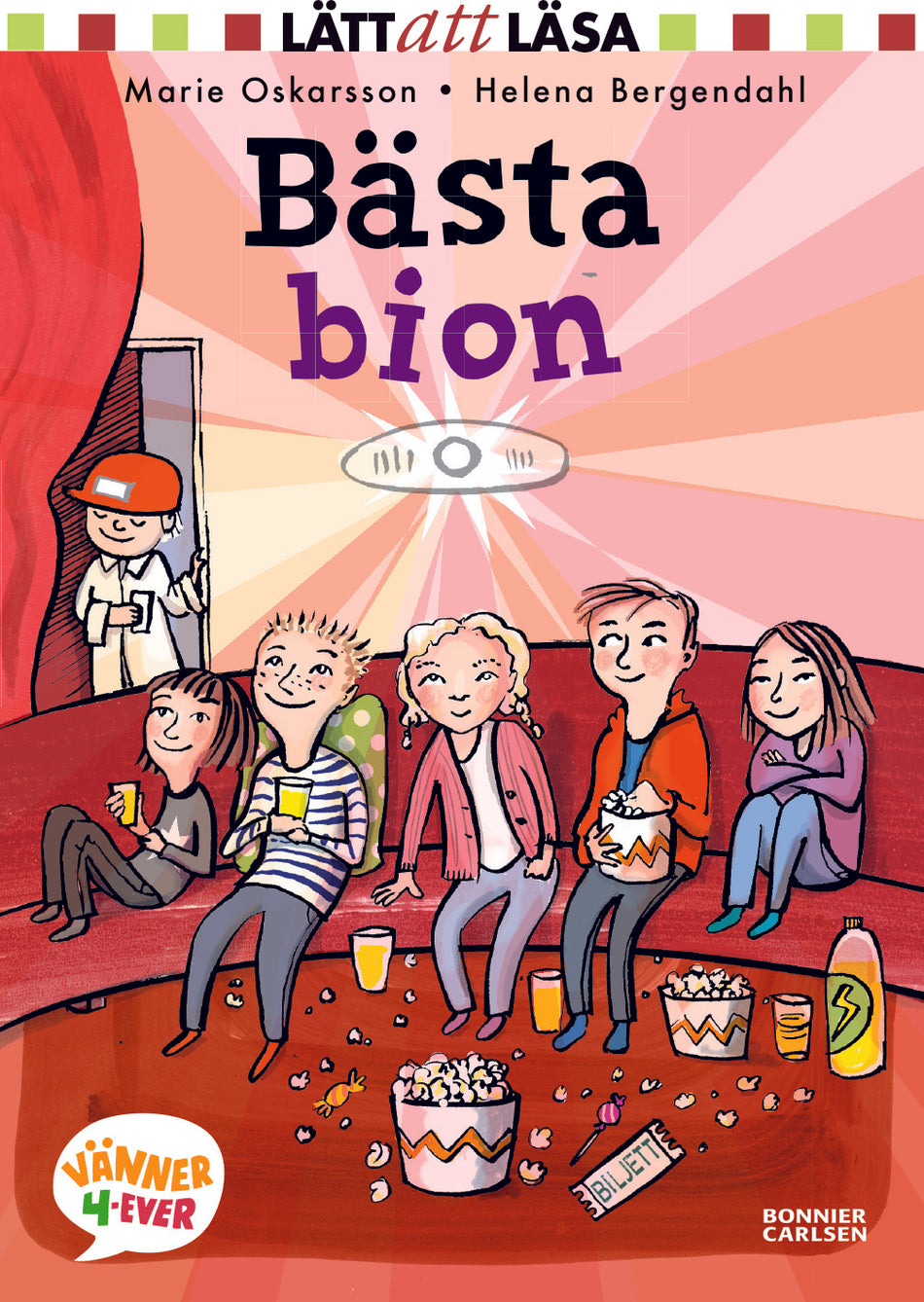 Om kompistrassel och att tvingas avstå från roliga grejer när pengarna inte räcker i fjärde delen av Marie Oskarssons och Helena Bergendahls populära serie Vänner 4-ever. Verklighetsnära och lättläst med karaktärer som alla kan känna igen sig i.Kompisarna bestämmer sig för att gå på bio tillsammans! Hurra, vad kul! Men Jacks glädje falnar när han berättar för mamma och hon säger att det inte går - just nu har de inte råd med någon bio. Inte vill han berätta för de andra heller. Men då blir allt tjafsigt och ingen förstår varför Jack inte vill - måste han vara så tråkig? Särskilt Edvin slutar aldrig tjata. Men när Stella och Emilia förstår varför Jack inte kan gå får de plötsligt bästa idén om hur ALLA ska kunna vara med på bion ...Mysigt och inkännande om relationer och vardagsproblem.