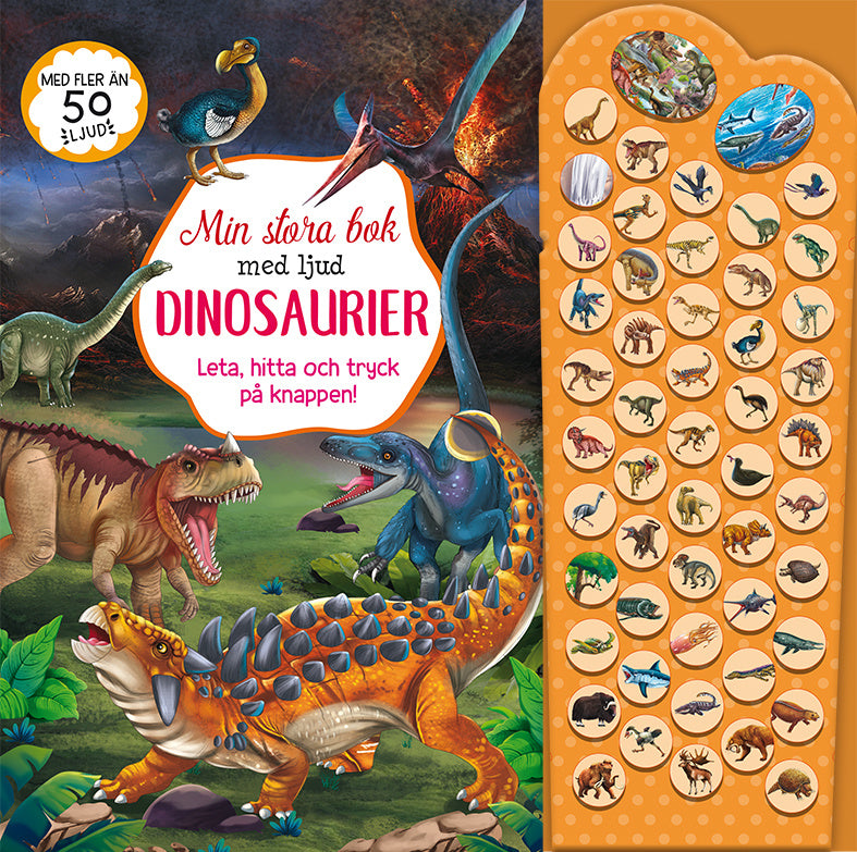 Stor ljudknappsbok med 50 olika ljud! Den här boken är full med dinosaurier som levde både i havet och på land för länge, länge sedan. Titta på de spännande bilderna, tryck på knapparna och lyssna på ljuden! Här får barnet möjlighet att träna upp sin observationsförmåga och lära sig om flera olik... Lue lisää