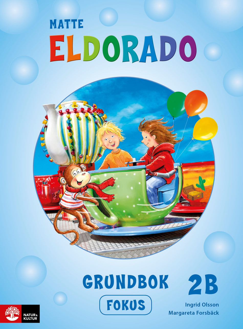 * Gemensam problemlösning  Eldorado för eleven Med Eldorado blir matematiken rolig och spännande. Eleverna får undersöka tillsammans och lära sig av varandra innan det är dags för egen färdighetsträning. Grundbok Böckerna är strukturerade så att eleverna kan hållas samlade och arbeta med samma område. Det finns sex kapitel i varje grundbok och varje kapitel består av 2–4 matematiska områden. Varje område inleds med ett gemensamt arbete på sidan Undersök, och följs av ett antal Träningssidor som eleven jobbar med för att befästa kunskap. * Utvärdering och repitition I slutet av varje kapitel finns en utvärdering för att eleverna ska bli medvetna om sitt eget lärande och reflektera över vad de kan. Där finns också en repitition för att hålla tidigare inlärda kunskaper aktuella. * Kul med matte Uppslaget Kul med matte har fokus på problemlösning. Låt eleverna tänka själva en stund innan de får arbeta i par och diskutera sina lösningsförslag gemensamt. Passa på att reda ut missuppfattningar och lyfta smarta strategier. * Undersök Sidan Undersök inleder varje nytt område. Här är fokus på undervisning och att upptäcka tillsammans. Efter din introduktion av Undersök-sidan får eleverna laborera, jämföra och diskutera. De dokumenterar sitt arbete på sidan i boken. Till sist får eleverna redovisa muntligt och ni sammanfattar arbetet tillsammans. * Träningssidor Efter Undersök arbetar eleverna vidare på egen hand med aktuellt område på träningssidorna i grundboken. Passa då på att observera elevernas arbete!  Grundbok Fokus En ny grundbok med fokus på det viktigaste! Grundbok Fokus har ett tydligt och enkelt och upplägg med färre uppgiftstyper, fler bilder som stödjer innehållet och exempel som vägleder. Med hjälp av lärarboken kan du ha samma undervisning, men välja den grundbok som passar dig och dina elever bäst. Bonusboken För elever som behöver mer utmaningar finns uppgifter till varje kapitel i bonusboken. På slutet finns även sidor som eleverna kan arbeta med oavsett var i grundboken de befinner sig. Läxbok Läxan är ett tillfälle att öva, befästa och sätta ord på sina kunskaper. Uppgiftstyperna är desamma som eleverna har mött i grundboken och nedtill på varje sida finns information till den som hjälper till med läxan.  Extra färdighetsträning Detta kopieringsunderlag är kopplat till sidor i grund­boken där eleverna kan behöva mer färdighets­träning för att befästa sina kunskaper.  Digitalt Lärarwebb Visa grundboken på storbild och undervisa med interaktiva funktioner. På varje ställe i boken där du kan vara hjälpt av konkret ­material finns digitala verktyg till din hjälp. Kostnadsfritt extramaterial till dina tryckta läromedel Till Eldorado åk 2 finns nyttiga och praktiska (kostnadsfria) komplement under Extramaterial som du når via Mina sidor. Det är gratis och enkelt att öppna ett konto om du inte redan har ett.  För eleverna finns kostnadsfria webbövningar med digital färdighetsträning kopplad till olika sidor i grundboken. För läraren finns elevernas webbövningar samt facit till diagnoser, uppdateringar i boken med mera. Programmering 2018 Så kompletterar vi Eldorado för åk 1-3 med programmering: Eldorado kompletteras med elevuppgifter och lärarstöd relaterat till programmering. Detta material kommer att läggas till som en bilaga på Mina sidor till att börja med, och vi lägger in uppgifter och text i handledningarna vid framtida tilltryck. Hur kommer läromedlet möta Skolverkets krav för undervisning i programmering? Det kommer att finnas uppgifter som tar upp det centrala innehållet från kursplanen. Uppgifter där eleverna får konstruera, beskriva och följa stegvisa instruktioner som grund för programmering samt uppgifter där eleverna får använda symboler vid stegvisa instruktioner.