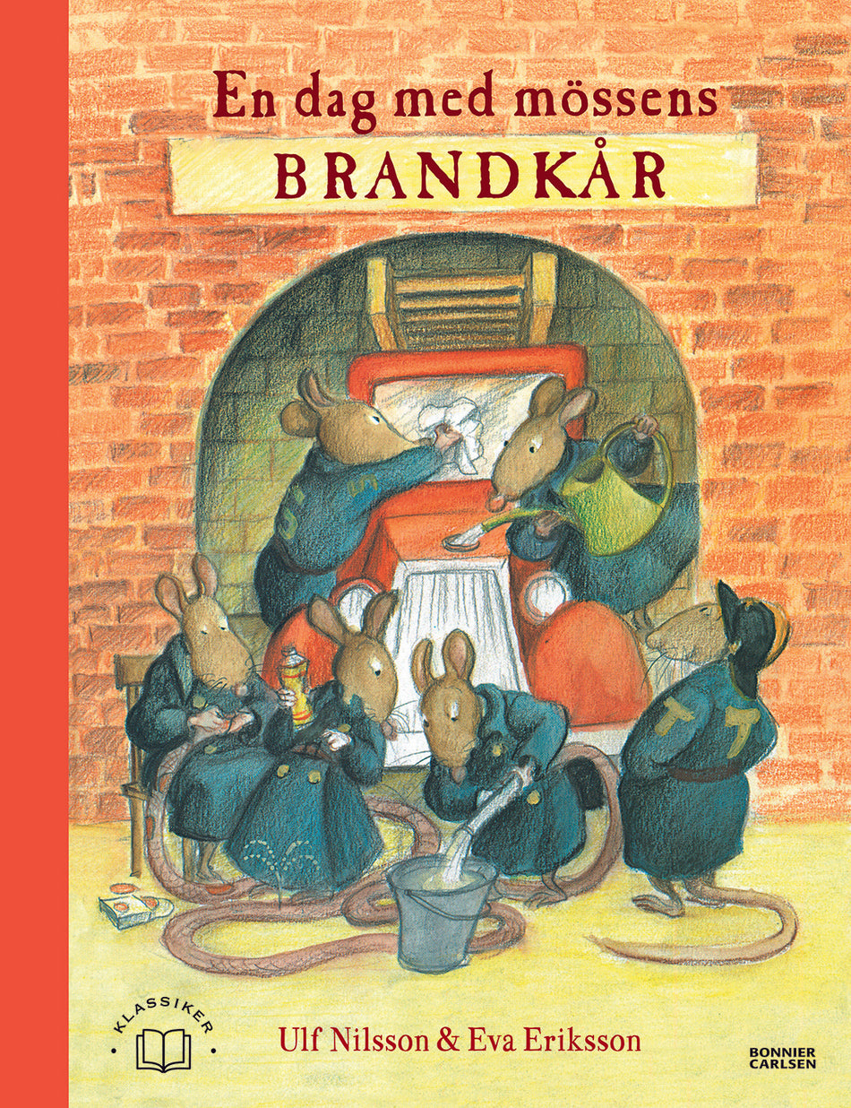 Jubileumsutgåva av Ulf Nilssons och Eva Erikssons älskade klassiker om mössens brandkår som alltid rycker ut för att trösta och hjälpa. Inget djur är för litet eller oansenligt – alla ska räddas!Men en dag bestämmer de mäktiga musmännen i dalen att det inte behövs någon brandkår längre. Var och en får ta ansvar för sig själv, tycker de. Så plötsligt en kväll börjar det brinna! Vem ska nu släcka elden?Eva Erikssons bilder är enastående och Ulf Nilssons text underbar högläsning. Humanism med humor, varm solidaritet och empati, när varje liten mus är lika viktig och minsta kryp behöver tröstas.