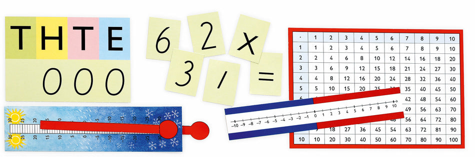 • Talkorten 0 till 9, tecknen, större än/mindre än, plus-, minus-, multiplikations-, divisionstecken och variabeln x