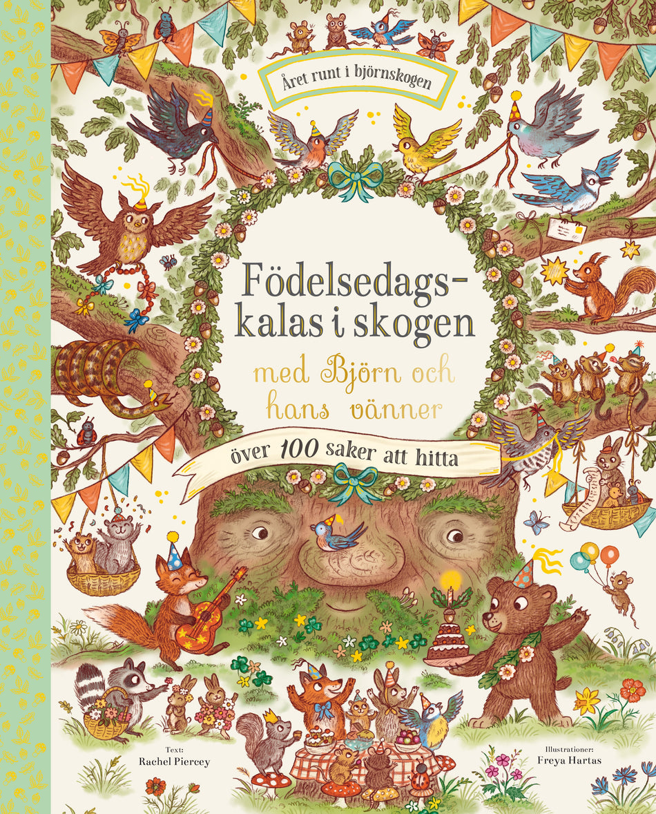 Följ med Björn och hans vänner på en underbar upptäcktsfärd i skogen medan de planerar och förbereder ett födelsedagskalas för den stora eken. Upplev årstidernas skiftningar medan djuren skriver och skickar ut inbjudningskort, pyntar skogen och framför en teaterpjäs. På varje uppslag finns förtjusande och detaljrika illustrationer med massor att leta efter och upptäcka: djur, blommor, växter och andra spännande saker.