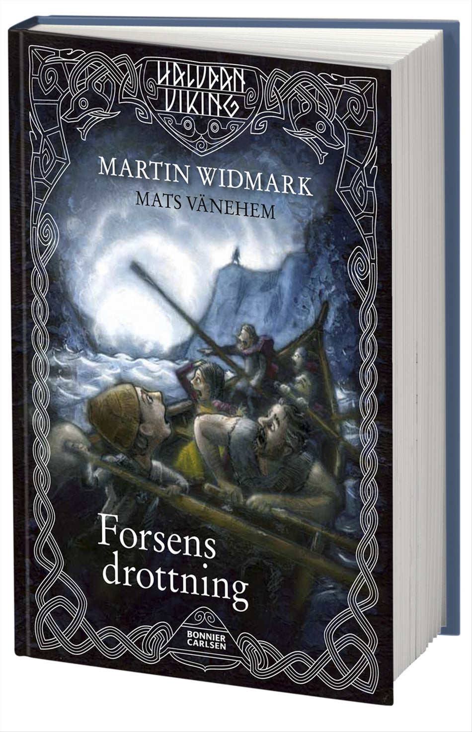 Med inspiration från Frans G Bengtsson har Martin Widmark brett på rejält i en serie mustiga rövarhistorier om den unge pojken Halvdan. Tillsammans med kompisen Meia hamnar han i det ena äventyret efter det andra. Forsens drottning är den fjärde delen i serien Halvdan Viking.I Forsens drottning bär det av med båt mot Miklagård (dagens Istanbul)! Halvdan vill söka efter sin pappa, som varit ute på vikingafärd i fem år.Halvdan, Meia och Björn erbjuder sig att hjälpa till och ro om de får följa med Grimulf och hans män till Miklagård.Resan dit blir ett hisnande äventyr: Pirater anfaller och de möter en riktig bärsärk, stöter på både patzinaker och jomsvikingar, innan de slutligen får syn på Forsens drottning. Och först då möter de den största faran: en livsfarlig båtfärd genom de sju kokande forsarna i Djneprs utlopp. "Halvdan Viking" är en serie av Martin Widmark och illustratören Mats Vänehem.Så här säger Martin Widmark själv om att skildra vikingatiden: "Att skriva för barn om våra, stundtals våldsamma och giriga, förfäder innebär att kryssa mellan respekt och avsky. Respekt för till exempel deras mod och båtbyggarkonst och avsky för blodsoffer, strandhugg och slavhandel. Men att försöka komma runt dessa ingredienser är inte heller möjligt." De tre tidigare delarna i serien är: Hövdingens bägare, Främlingens grav och Vargens hjärta.Halvdan Viking kan du fr o m våren 2017 träffa på Vikingaliv – Stockholms nya museum om vikingatiden. Vikingaliv är ett äventyr och en resa genom en av historiens mest mytomspunna tidsperioder. På Djurgården i Stockholm, mellan Vasamuseet och Gröna Lund, skapas en dramatiserad berättelse om vikingatiden anno 963, och Halvdan Viking och Meia visar de yngre besökarna hur det var att leva på vikingatiden.