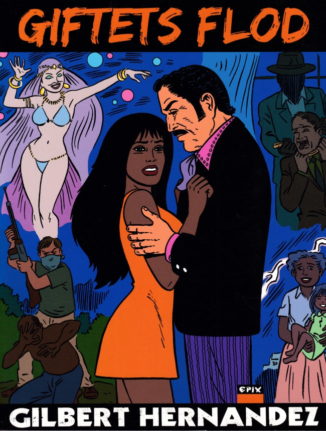 Hernandez berömda krönika om Palomar kretsar kring byns baderska, den storbarmade och ofta aggressiva Luba – viljestark, sexig, med många barn av nästan lika många fäder. ”Giftets flod” berättar om Lubas liv innan hon slår sig ned i Palomar. Luba, dotter till en lokal skönhetsdrottning och en fattig indian, blir bortgift redan som 15-årig till bandledaren och gangstern Peter Rio, som skänker henne ett liv i lyx bland våldsamt antikommunistiska gangstrar som mördar och terroriserar ”vänsterslöddret” i den fria företagsamhetens och ”patriotismens” namn. Denna spretande, komplexa berättelse om gangstrar, revolutionärer, fattigt folk, lyxhustrur, bögar och transsexuella och om kvinnors styrka och frihetslängtan följer personerna från femtiotalets början till sjuttiotalets slut, berättar om hur de förändras med åren och om den oföränderliga längtan och behovet av sex och närhet även hos de mest vedervärdiga. ”Giftets flod” har de tvära kasten, grälla personligheterna och sensationsartade händelserna hos en latinamerikansk såpopera, men är samtidigt en storslagen och förfärande politisk och social bildväv över ett utsuget, djupt korrumperat samhälle. Boken anses allmänt vara Gilbert Hernandez hittills största mästerverk. Gilbert Hernandez har nått världsrykte med sin långa, vindlande krönika om den halvt mytiska centralamerikanska byn Palomar och dess invånare. Flera av böckerna i sviten har redan utkommit på Epix Bokförlag.