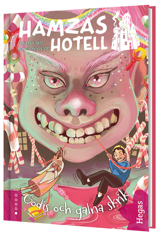 Stora äventyr på få ord – det gör Tobias Gard riktigt bra. Här bjuder han på ett skruvat äventyr för nybörjarläsaren med många skratt. Genom ett drömlandskap av godis får Mikaela Nordlunds illustrationer det att vattnas i munnen. Godis och galna skrik är den fjärde fristående boken i serien Hamzas hotell.