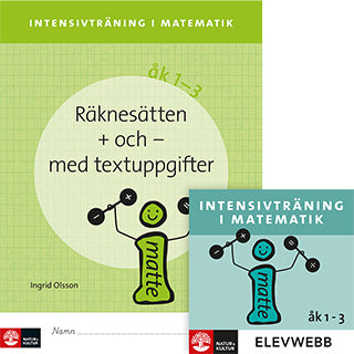 Intensivträning i matematik innebär att en elev får en-till-en-undervisning utöver undervisningen i klassen under en begränsad tid, 20-30 min per dag, 4-5 dagar/vecka. Varje träningstillfälle har ett eget uppslag i elevhäftet och där finns även aktiviteter som eleven ska göra tillsammans med en v... Lue lisää