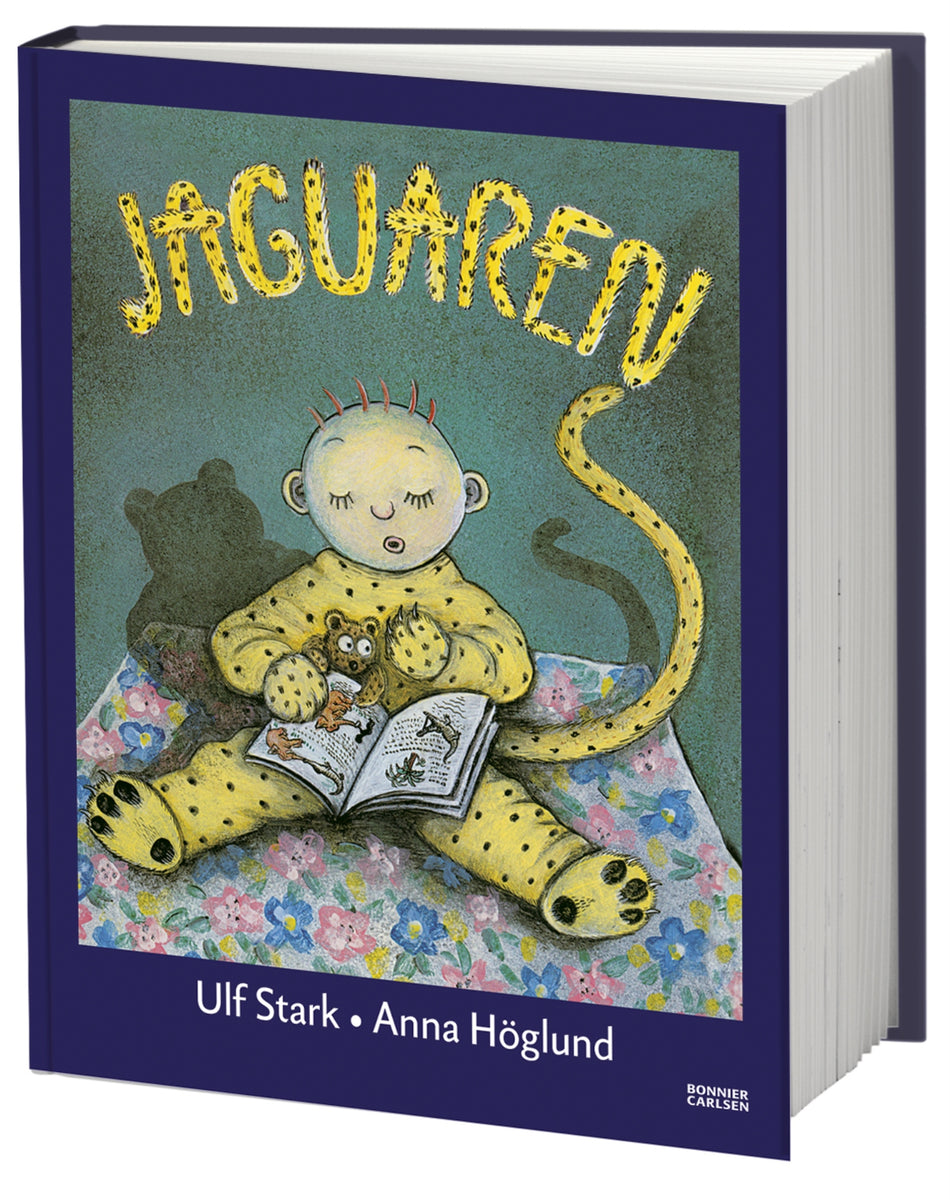 Elmer är liten och obetydlig, men en kväll förvandlas han. Plötsligt blir han stor och jättefarlig, han bli en jaguar! Han ger sig ut i storstadsdjungeln och skrämmer grannens elaka hund, läxar upp en tant som drömmer om en jaguarpäls och skrämmer dem som alltid skrämts. Och under nattens stjärnor träffar han katten Ellinor och äventyret börjar …Ulf Starks rimmade text fascinerar och i Anna Höglunds illustrationer finns såväl ömhet och kärlek som rädsla och tragik. En förtrollande vacker berättelse, humoristisk och skarp, om att bli jättefarlig och kunna skrämmas men också om våndan av att vara stark. Jaguaren är Ulf Starks och Anna Höglunds första gemensamma bilderbok och blev början på ett långt och framgångsrikt samarbete. För Jaguaren erhöll de 1988 Nils Holgersson- respektive Elsa Beskow-plaketten.