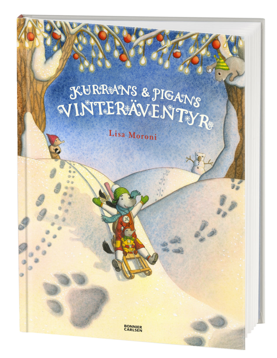 I skogen där Kurran och Pigan bor har den första snön just fallit. Hela skogen har förändrats! Plötsligt är det svårt att hitta. Tur att det finns fullt av spår som de kan följa! Men vems är egentligen de där stora tassavtrycken? Det blir ett äventyr som de två vännerna sent ska glömma! En förtro... Lue lisää