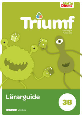 Matte Direkt Triumf är ett tydligt, lättanvänt material som är möjligt att anpassa efter olika behov. Lärarguiden innehåller ett tydligt stöd med lättöverskådliga planeringar med formativ start, genomförande och formativ återkoppling. Det finns arbetsblad till varje kapitel och uppslag med facit till elevboken. Lärarguiden innehåller även fakta, stöd för formativ bedömning samt tips på aktiviteter. Rekommenderas med: Facit Kopieringsunderlag