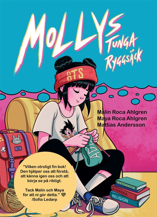 ”Mollys tunga ryggsäck” handlar om en tjej i femman som gillar anime och musik. Hon tycker särskilt mycket om k-pop-bandet BTS. Molly tycker också om att sticka, och är gärna i fred med sina tankar och den stora sorgklumpen hon bär på. Hon blir missförstådd av både storasyster, lärare och klasska... Lue lisää
