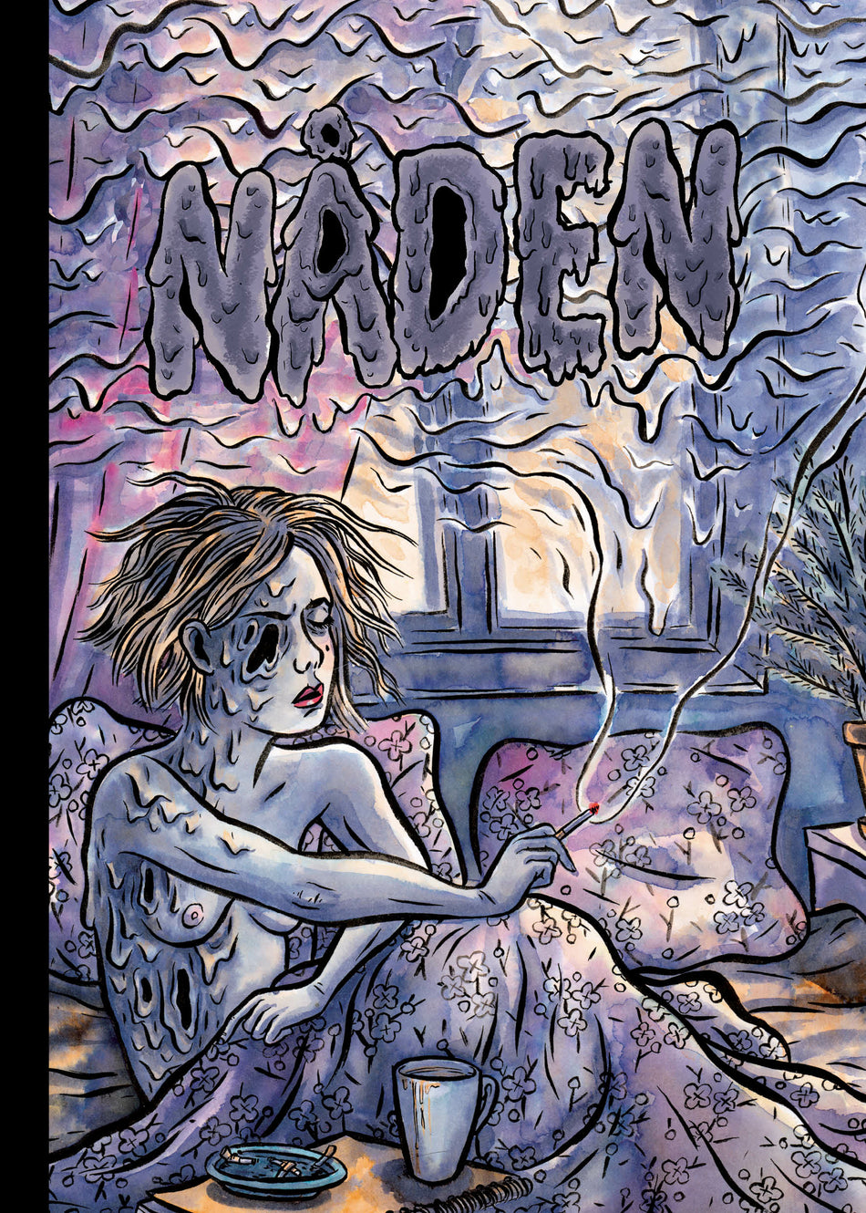 "Nåden" är den finska serietecknaren Emmi Valves debut i bokform på svenska, men hon publicerades fortlöpande på svenska i tidskriften Det Grymma Svärdet medan 2015 och 2019.