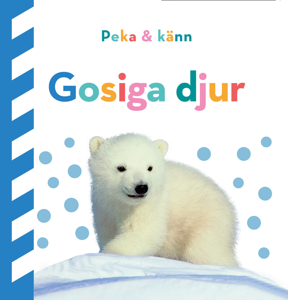 Peka och känn är en bokserie för de allra yngsta läsarna. Det lilla formatet är perfekt för små händer och de mjuka, vadderade pärmarna är roliga att klämma på och tål att bitas i. Böckerna är fulla av kul och färgglada bilder samt taktila delar i olika material som är spännande att känna på. I den här boken får barnen upptäcka och lära känna en massa olika gosiga djur, som till exempel koala, fjällräv och marsvin. Peka och känn hjälper barnen att utveckla både finmotoriken och språkinlärningen. I samma serie fi nns också: