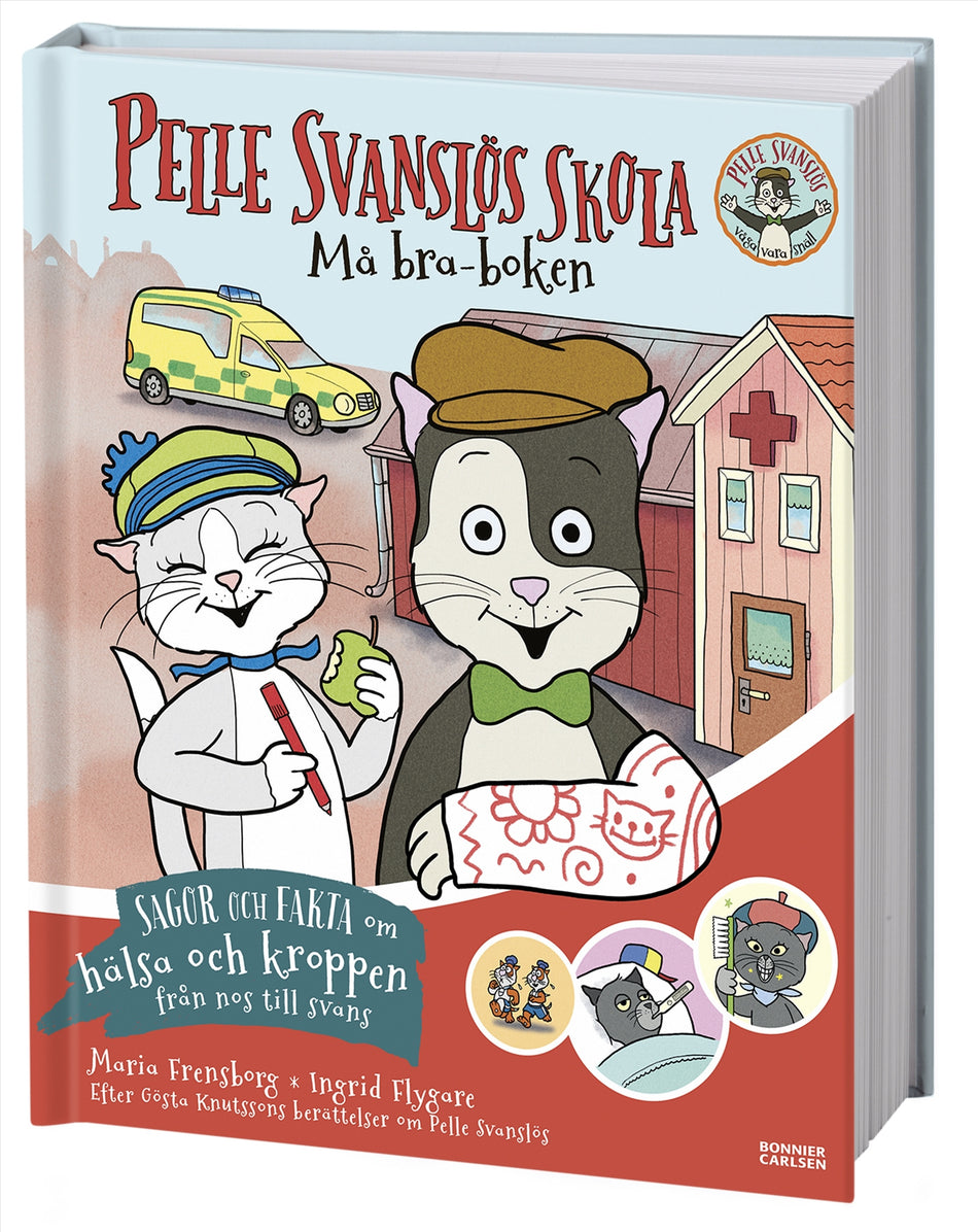 Vad händer i kroppen när du blir sjuk? Varför ska man gå till tandläkaren? Och hur ska man göra för att må bra och vara pigg? I I den här boken lär Pelle Svanslös och hans vänner i berättelser och faktarutor ut kunskaper om allt spännande i kroppen.Läs de roliga berättelserna om bland annat när Pelle bröt tassen, när Friskus blev sjuk och om när Måns försökte förstöra för Pelle på kattavårdscentralen. På faktasidor med barnnära tilltal får vi också lära oss om skelettet, baciller, vad som händer med maten i magen, och träffa läkare och sjuksköterskor i katternas värld.Maria Frensborgs text om Gösta Knutssons älskade katter, tillsammans med Ingrid Flygares fina illustrationer, gör boken till en både spännande och lärorik bok att läsa och samtala om. Perfekt inför besöket hos tandläkaren och BVC, eller varför inte under influensasäsongen.