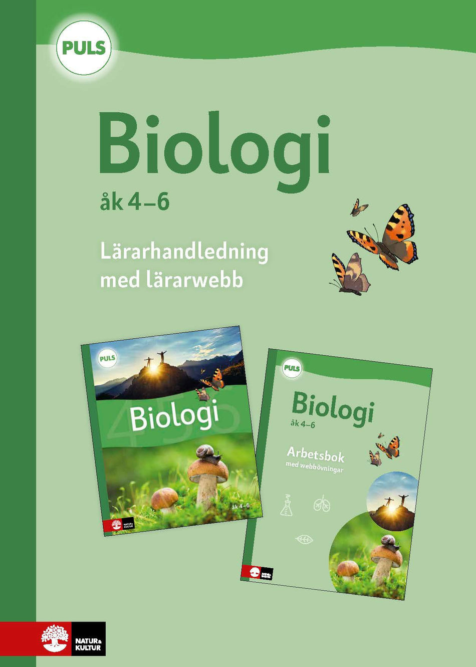 Arbetsbok med elevwebb Arbetsboken innehåller varierade uppgifter där eleven tränar ord och begrepp, befäster faktakunskaper och utmanas till vidare tänkande. Till arbetsboken hör självrättande webbövningar där eleven befäster ord och begrepp. 3D-bilder till arbetsboken Dina elever kan med hjälp av mobil eller surfplatta titta på tredimensionella bilder som är utvalda för PULS Biologi 4–6 arbetsbok. 3D-bilderna går att vrida och zooma in i för att eleverna ska kunna upptäcka detaljer och fördjupa sina kunskaper. Eleverna kan med hjälp av AR-teknik till exempel placera en bild av ett hjärta som pumpar på en klasskompis för att studera vad som händer i kroppen just nu. Dessutom finns quiz med frågor till varje kapitel. Puls 3D-bilder får ni tillgång till via appen Ludenso Explore. På första sidan i arbetsboken finns en QR-kod som eleverna skannar för att komma till materialet. Grundbok Digital Grundboken finns i digital version i en plattform med smarta funktioner för ett tillgängligt lärande. Innehållet är detsamma som i den tryckta boken men omges av ett gränssnitt och digitala funktioner som underlättar såväl läsning som inlärning, till exempel uppläst ljud. Prova kostnadsfritt i 30 dagar. Paket Bok + Digital Grundboken till PULS Biologi finns nu även som ett paket där du köper boken och får tillgång till den digitala versionen i 12 månader utan extra kostnad. Lärarhandledning med lärarwebb Lärarhandledningen innehåller fördjupande fakta, didaktiska tips, frågeställningar, förslag på aktiviteter och begreppsförklaringar. Den ger dig stöd för att aktivera elevernas tänkande, arbeta praktiskt samt språk- och kunskapsutvecklande. På den tillhörande lärarwebben finns material för digital visning som stöd till din undervisning i klassrummet. Vid köp av lärarhandledningen ingår ett års licens till lärarwebben. Efter 12 månader kan du förnya ditt abonnemang och köpa webben separat. PULS Biologi, äldre upplaga PULS Biologi, tredje upplagan utkom 2012. Till varje grundbok finns en arbetsbok och en lärarbok. På webben finns extramaterial med elevövningar och facit. Böckerna finns kvar för kompletteringsköp så länge lagret räcker.