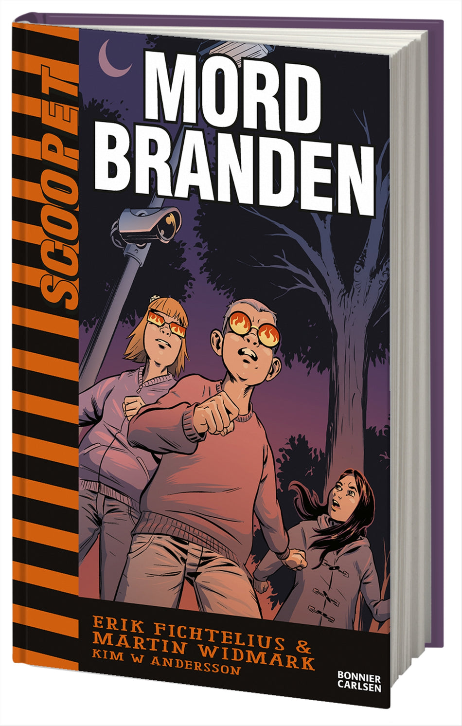 Skolans rektor försöker tysta ner en skandal på skolan! Det får vännerna Hugo, Maryam och Johanna erfara när deras nättidning "Scoopet" plötsligt stängs ner efter att de rapporterat om omfattande mobbing på skolan. Det verkar som att rektorn bara vill att skoltidningen skriver om sådant som är bra på skolan. Plötsligt står de utan ansvarig utgivare, och blir tvungna att fundera över vad det innebär att vara beroende av någon. Det får ju inte påverka deras rapportering. Men vännerna låter sig inte stoppas. De får kontakt med den prisbelönta journalisten Katja Ritter som låter dem låna både hennes skrivarstuga och hennes blogg. Men då händer en katastrof. Skrivarstugan brinner ner till grunden! Och branden verkar vara anlagd …Martin Widmark och Erik Fichtelius skapar tillsammans en ny bokserie med fokus på ungas rätt att granska och påverka sin omvärld. Häng med när en grupp 11-åringar startar en egen nättidning, som får konsekvenser de aldrig kunnat ana. En bok att prata om, och inspireras av, för alla som gillar att skriva och skapa egna berättelser!Den ständigt lika kreative och nyfikne Martin Widmark (LasseMajas detektivbyrå) har teamat ihop sig med Erik Fichtelius (journalist). Tillsammans har de tagit initiativ till ett projekt som riktat till mellanstadieläsare tar upp vad journalistik är, hur du kan påverka och granska din omvärld och hur du förhåller dig till källkritik. En bok att sträckläsa och inspireras av!