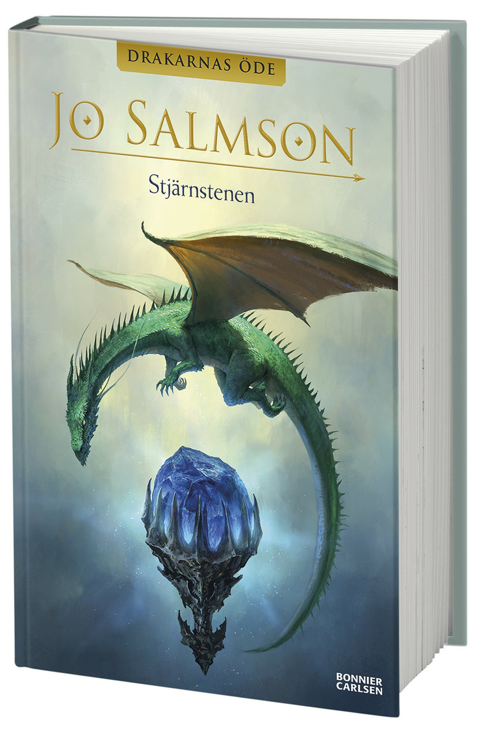 Stjärnstenen är första delen i Jo Salmsons nya fantasyserie "Drakarnas öde". Den mystiska kraften i Stjärnstenen kan förgöra en hel värld - men den kan också varna för faror. Möt Nea som har Gåvan att tolka skuggorna i stenens inre!Neas mamma var en av Demars berömda drakriddare. När hon förälskade sig i Belon, stjärntolkaren, tvingades hon att lämna sin familj och överge sin gröna drake. Hon och Belon fick bara några få lyckliga år tillsammans. Nea var inte mer än nyfödd när hennes pappa dödades i kriget mot häxmästaren.Sedan dess har mäster Fenel varit stadens enda stjärntolkare. Nu står Nea inför sitt stora prov - om hon också visar sig ha Gåvan blir hon stjärntolkarens lärling.Men det hon ser i stenens skuggmönster förändrar hennes liv för alltid. När Nea upptäcker sanningen om sin pappas död börjar hon ana vilken fara som hotar! Nu behövs Demars drakar mer än någonsin - men de och drakriddarna verkar ha svikit sina löften ...Med Stjärnstenen inleds serien "Drakarnas öde". För första gången skriver Jo Salmson en längre roman utan illustrationer. Den som läst böckerna om Tam kommer att känna igen sig i världen - men serien är helt fristående. Författaren lovar dock att Tam och Indre, och alla de åtta drakarna, kommer att dyka upp i berättelsen. Riktigt hur och när vill hon inte avslöja i förväg ...