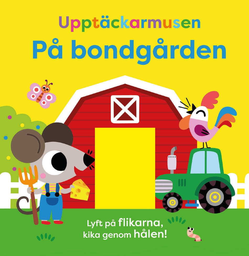 Upptäckarmusen har tappat bort sin ost! Kan du hjälpa henne att hitta den? Följ med musen på bondgården och leta under höstacken, i hönshuset, i hagen och i ankdammen och se om du kan hitta osten. Upptäckarmusen är en serie roliga och interaktiva böcker för små och nyfikna barn. På de färgglada och lekfulla uppslagen finns massor av skoj titta på och upptäcka. Dessutom finns det mjuka flikar att lyfta på och kikhål att titta igenom. I samma serie finns också Upptäckarmusen i havet