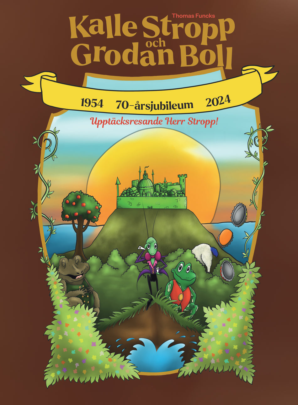 I år, 2024, är det 70 år sedan Kalle Stropp och Grodan Boll träffades för första gången på Kalle Stropps äng. Under alla de år som gått har de varit med om många äventyr ihop och besökt mängder av spännande platser som ingen förut hört talas om.