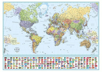 En Världskarta för väggen i klassrummet, hemma eller på kontoret, är både lärorik och vacker. Levereras rullad i plasttub. Världen, politisk, skala 1:35 milj. Världens 195 självständiga stater med flaggor. Huvudstäder tydligt markerade med rödpunkt. Innehåller ca 4500 namn. Bergskedjor markerade ... Lue lisää