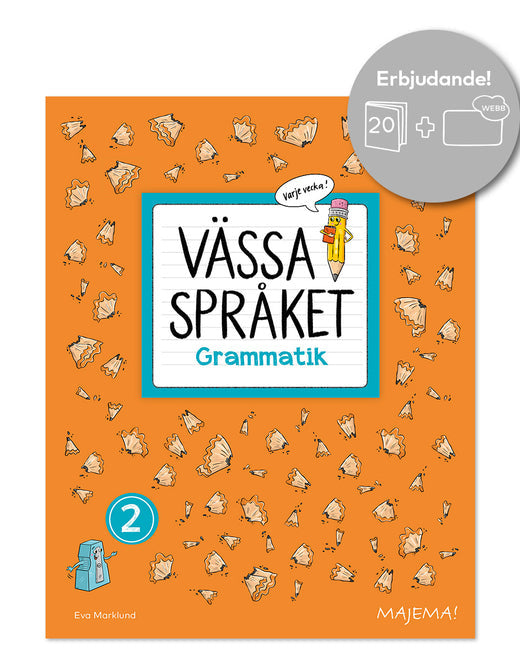Vässa språket grammatik 2 paket består av 20 arbetsböcker samt en lärarwebb.